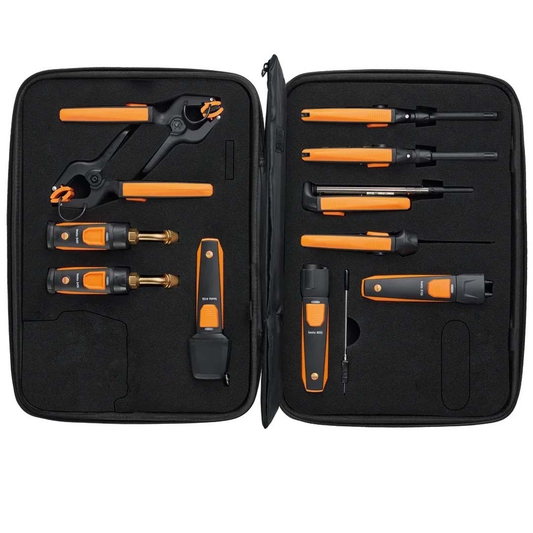 Всеосяжний комплект для професіоналів в області опалення, кондиціонування, охолодження та вентиляції. Комплект ідеально підходить для проведення перевірки або технічного обслуговування систем та містить всі Смарт зонди testo: 2 термометра з затиском testo 115i, термометр температури повітря testo 915i, пірометр testo 805i, 2 термогігрометра testo 605i, термоанемометр testo 405i, крильчатий анемометр testo 410i, дифманометр testo 510i, 2 манометри високого тиску testo 549i. В інтернет-магазині компанії Ліфот ви зможете купити термометри, манометри, гігрометри, анемометри, пірометри, дифманометри, які мають високу надійність, якість і точність вимірювань, з доставкою по території України, офіційною гарантією та обслуговуванням.