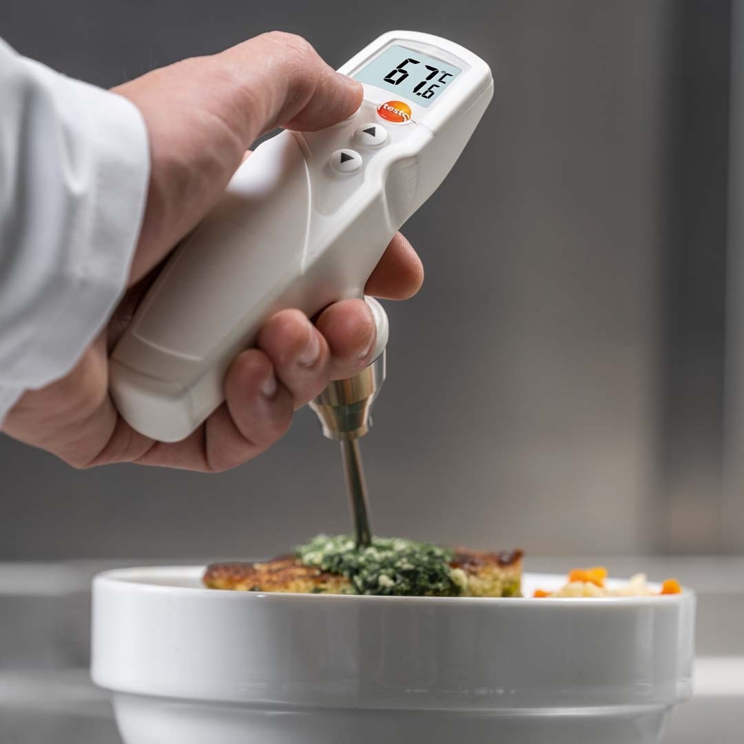 Кулінарний термометр testo 105 сертифікований HACCP як безпечний для продуктів харчування.