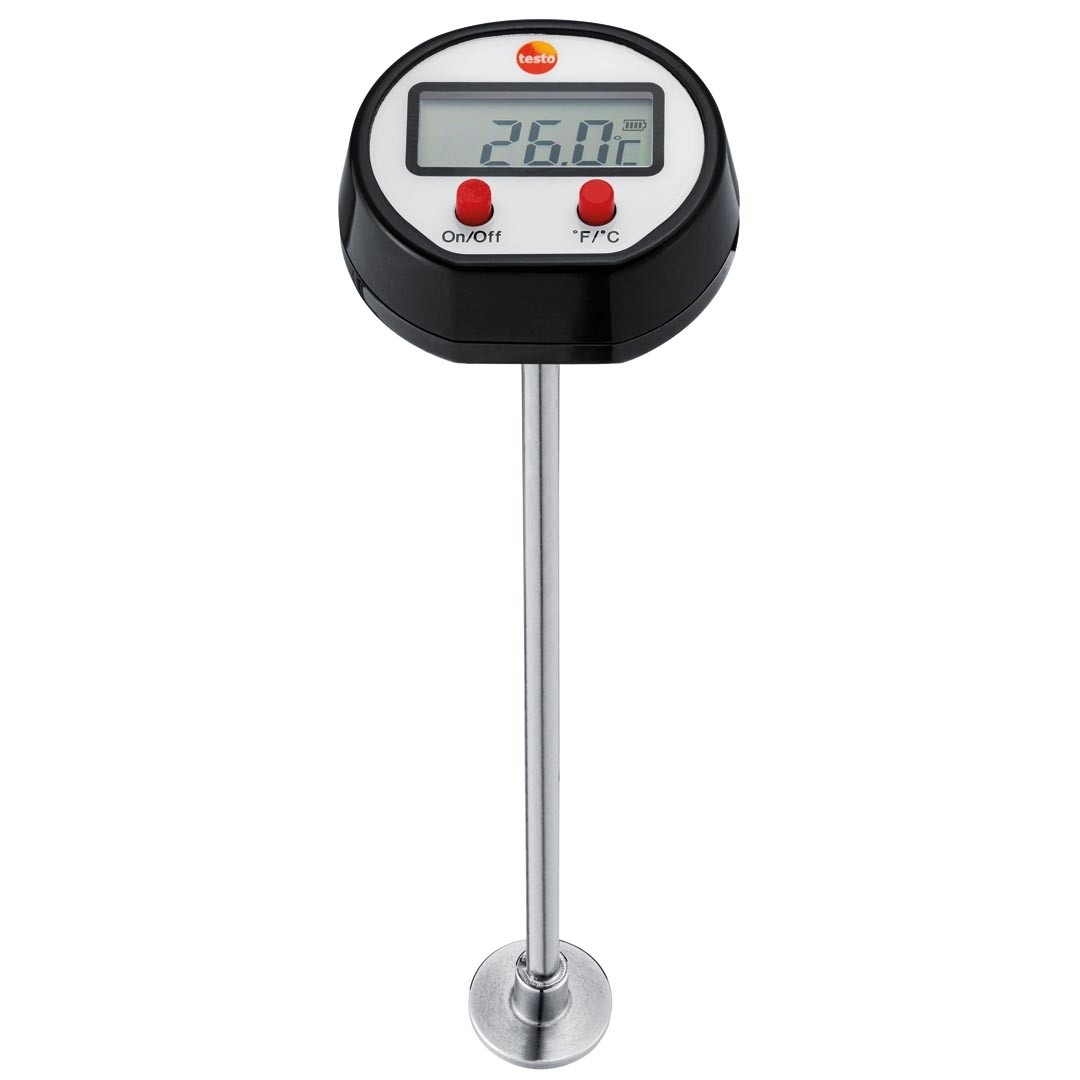Міні термометр testo 1109 призначений для вимірювання температури поверхні. Широкий круглий накінечник зонда дозволяє легко розмістити його на рівній поверхні. Цифровий термометр має широку сферу застосування та може використовуватись для різних методів вимірювання температури поверхні: контролю температури радіаторів, трубопроводів, кухонних поверхонь для приготування, а також для проведення вимірювань у системах ОВК. В інтернет-магазині компанії Ліфот ви зможете купити термометри, які мають високу надійність, якість і точність вимірювань, з доставкою по території України, офіційною гарантією та обслуговуванням.