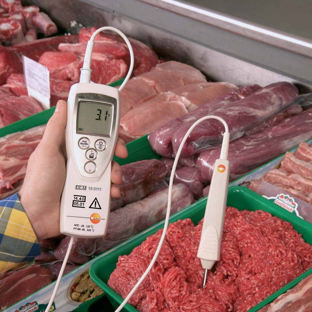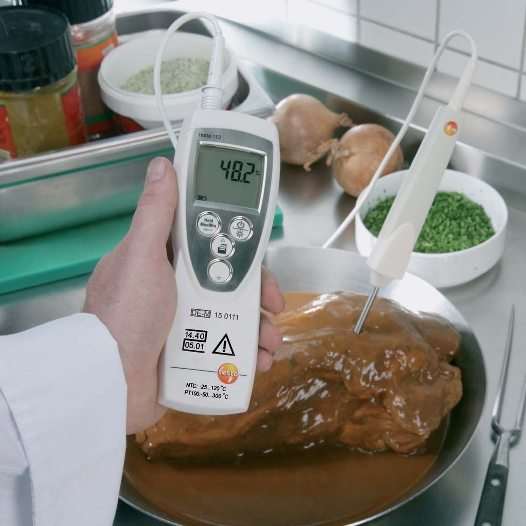 Завдяки використанню високоточних зондів температури з термоопором (NTC або Pt100), багатофункціональний термометр testo 112 охоплює весь спектр температур, що вимірюються в харчовій промисловості: від глибокої заморозки (від -50 оС) до високотемпературної обробки продуктів (до +300 оС).