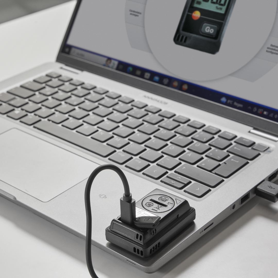 Завдяки USB інтерфейсу логер легко підключається до комп’ютера, без необхідності в додаткових адаптерах. Програмне забезпечення testo ComSoft Basic для ПК забезпечує швидке програмування реєстратора, зчитування та аналіз виміряних даних у графічному та табличному вигляді, а також їх експорт у Excel або PDF.