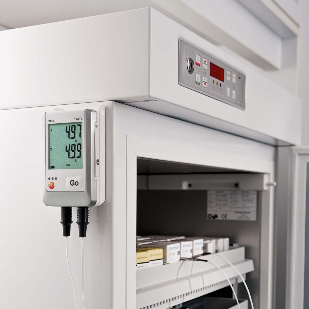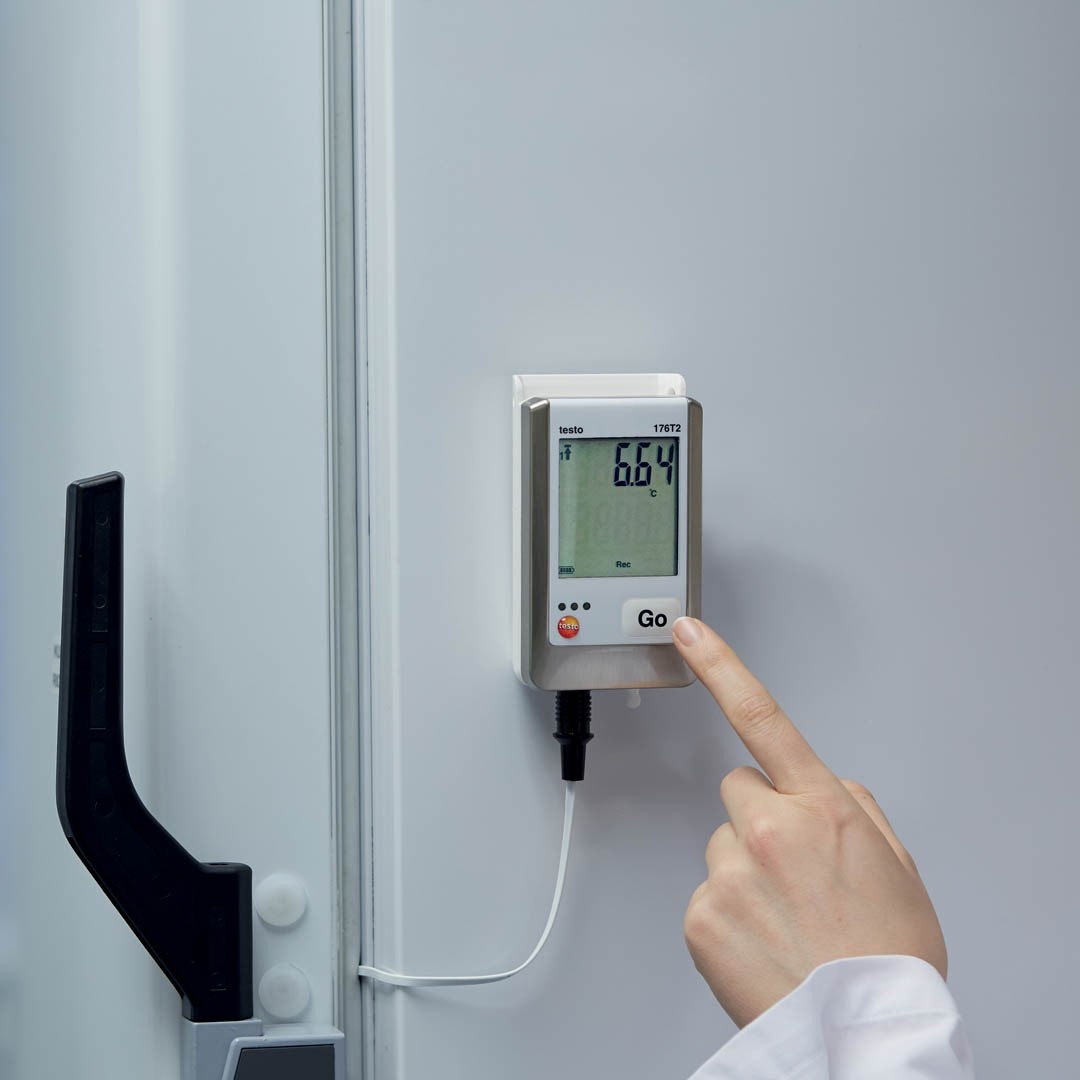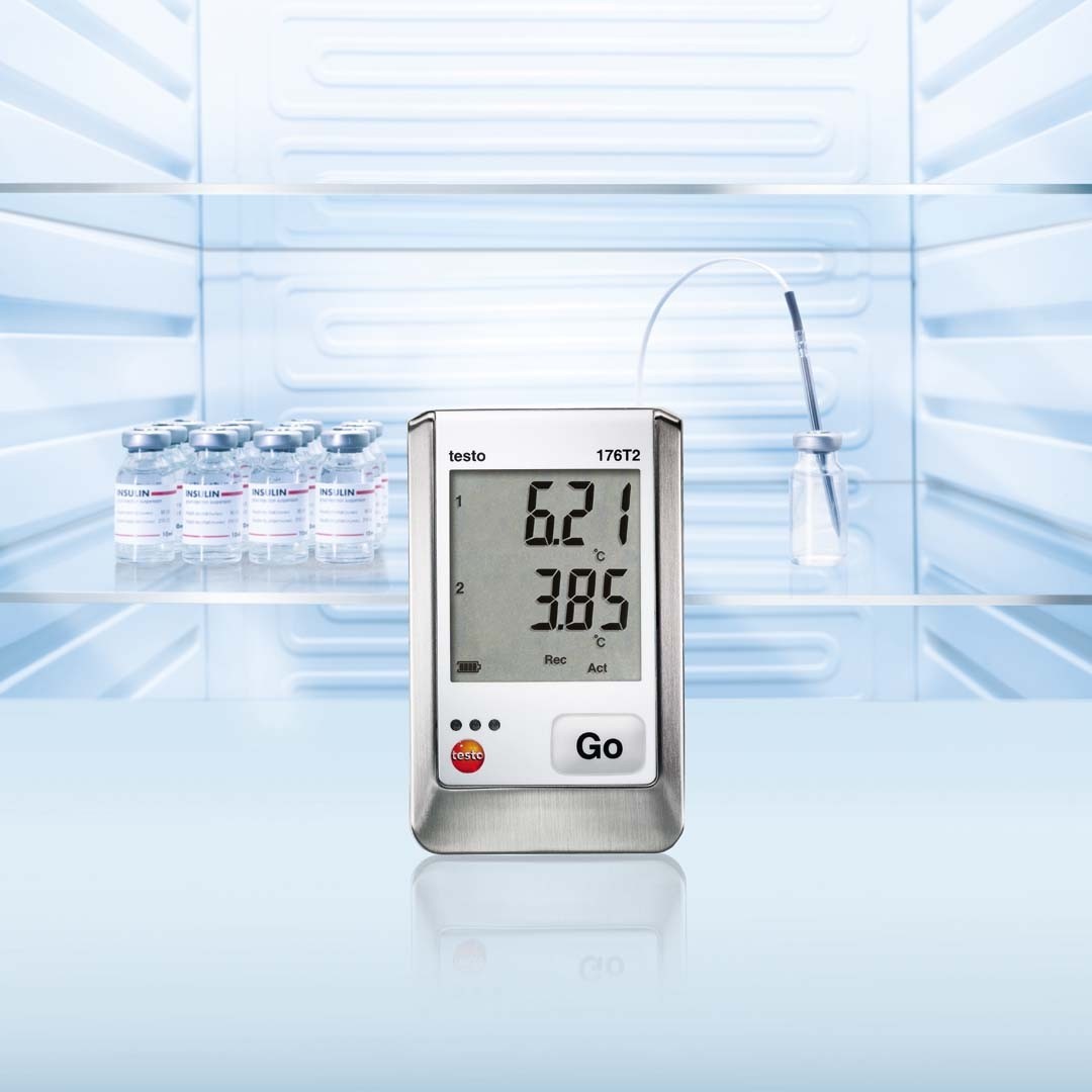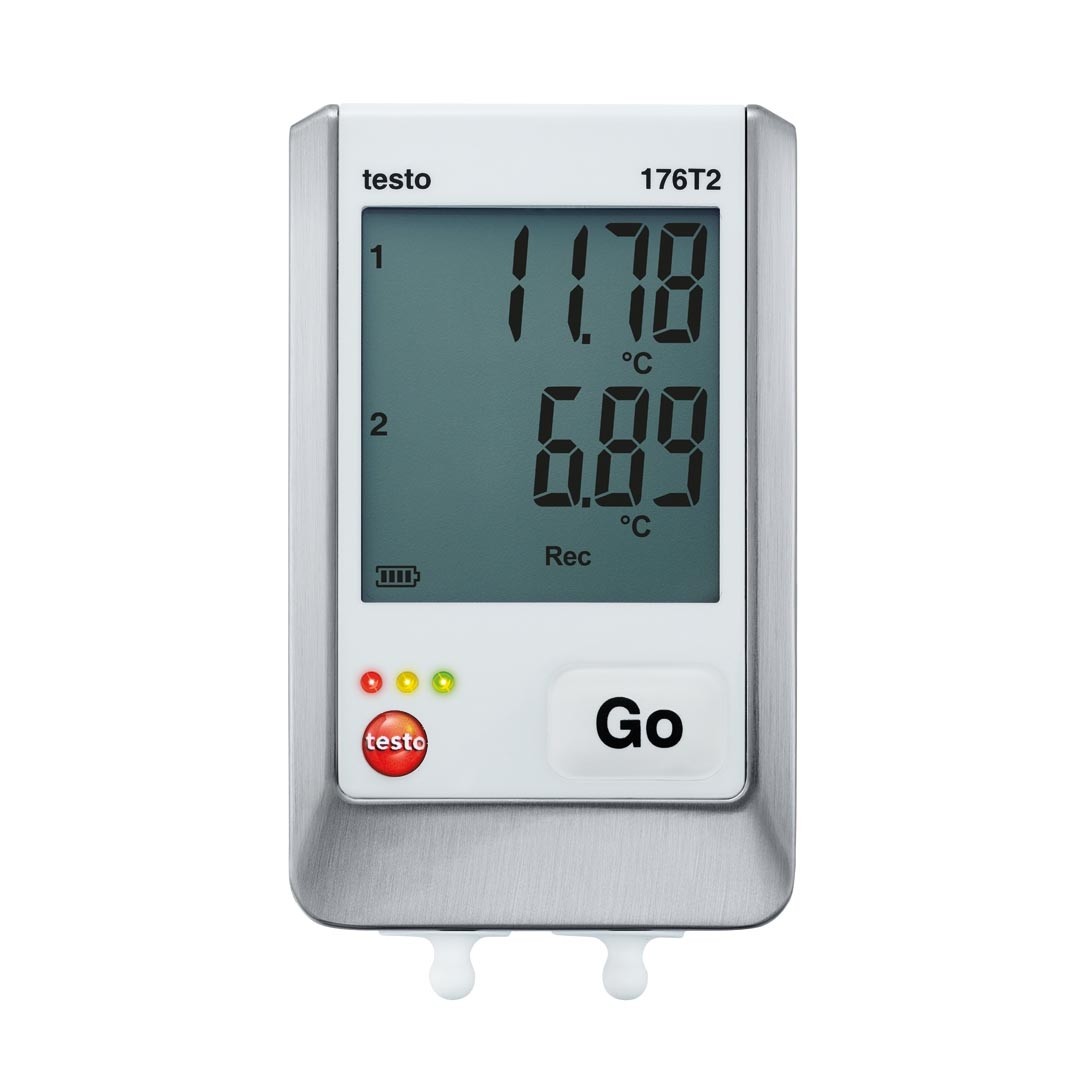 Логер, реєстратор температури testo 176 Т2 з можливістю підключення двох зондів температури, водонепроникним корпусом, візуальною сигналізацією, ресурсом батарейок до 8 років, пам'яттю на 2 000 000 значень, збереженням даних при розрядці або заміні батарейок, ПЗ для програмування та зчитування даних