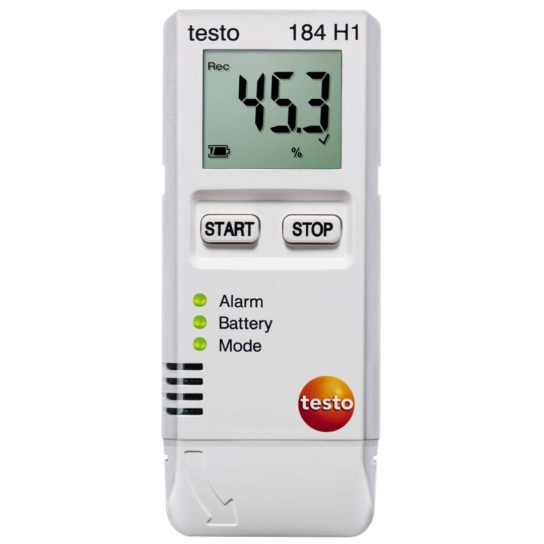 Компактний логер, реєстратор температури та вологості testo 184 H1 з візуальною сигналізацією, пам'яттю на 60 000 значень, обміном даних зі смартфоном по NFC, розрахунком середньої кінетичної температури, підключенням до комп'ютера безпосередньо без необхідності в ПЗ, автоматичним створенням звітів