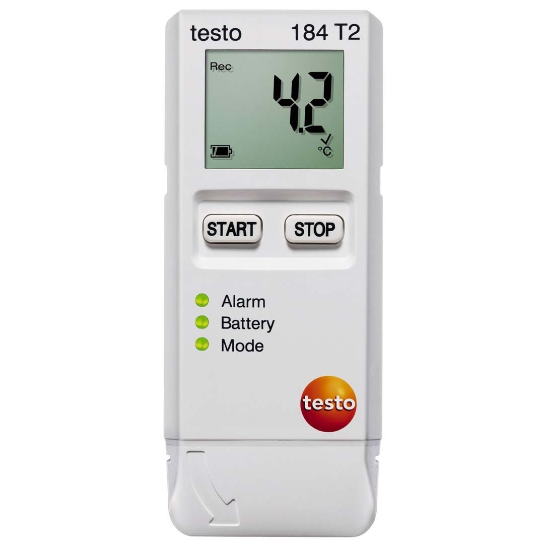 Логер даних testo 184 Т2 оснащений дисплеєм та незмінною батарейкою, розрахований на 150 днів роботи з моменту запуску вимірювань, при частоті вимірювань 5 хвилин. У процесі вимірювань реєстратор testo 184 T3 може записати в пам'ять до 40 000 значень температури. Логери температури testo 184 Т2 призначені для моніторингу температури чутливої продукції в процесі зберігання та транспортування.