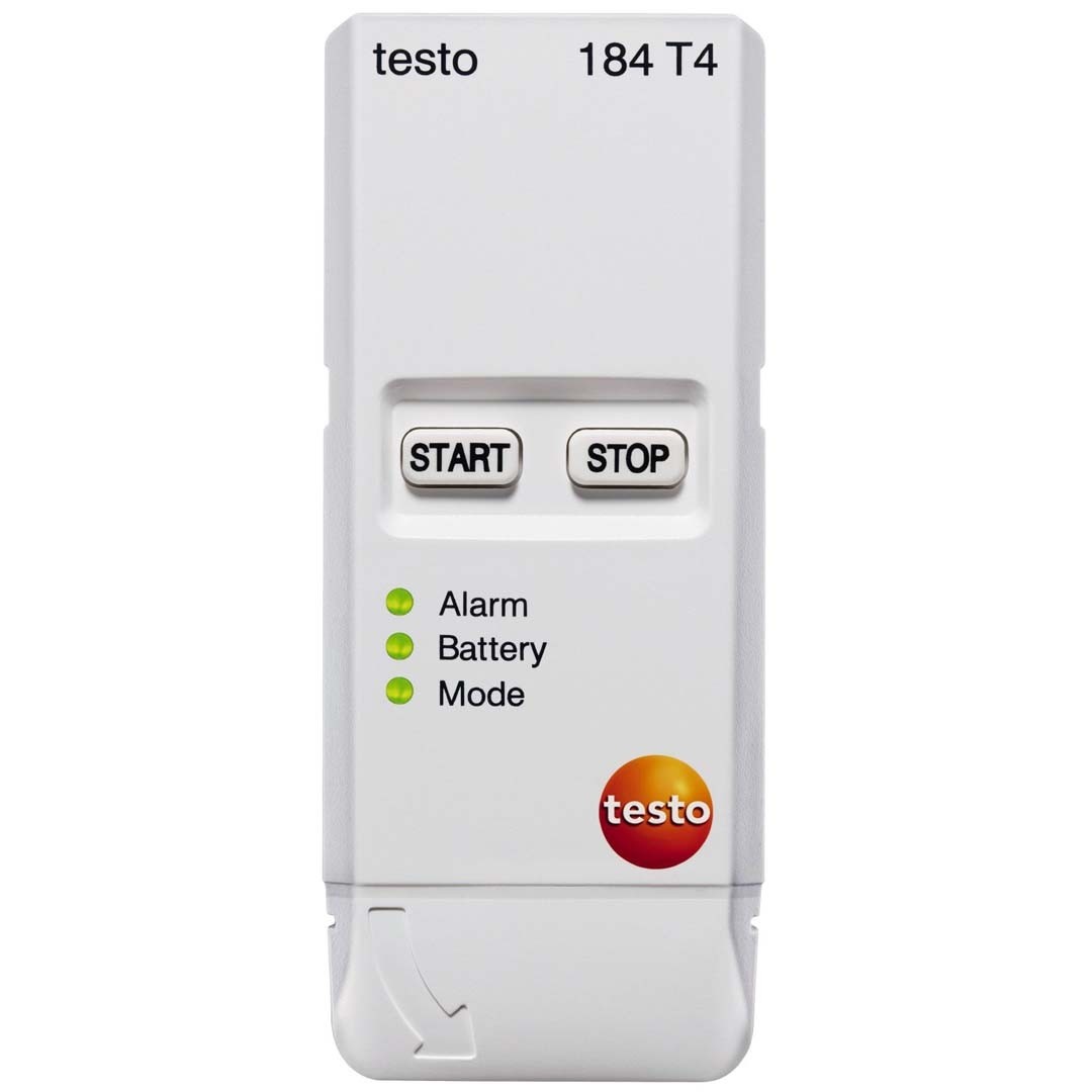 Керувати реєстратором температури testo 184 T4 надзвичайно просто – вимірювання починаються при натисканні кнопки "Старт" і завершуються при натисканні кнопки "Стоп". Не пропустити перевищення граничного значення допомагає сигнал світлодіодного індикатора на корпусі реєстратора температури.