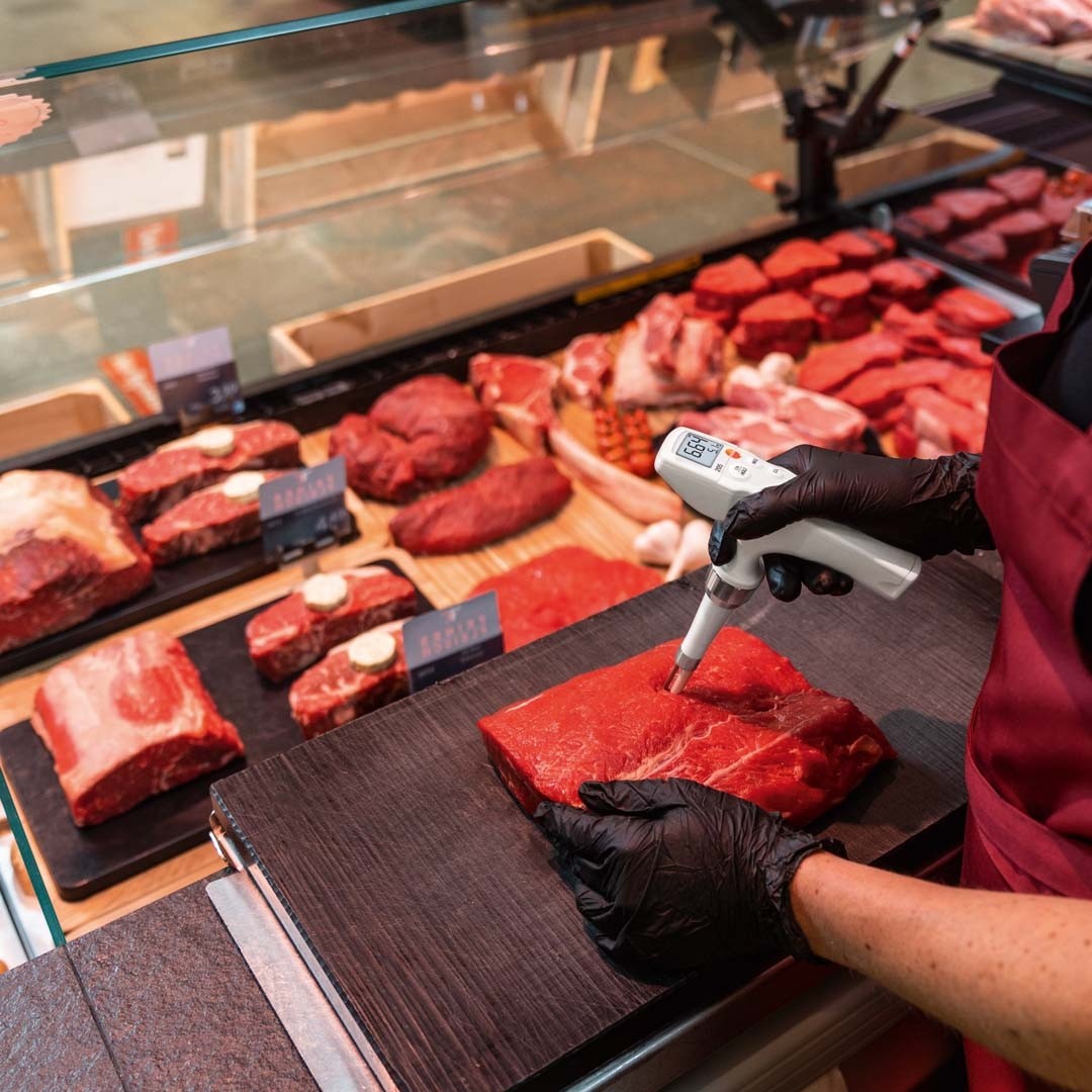 При виробництві та контролі якості продуктів харчування значення pH та температури відіграють найважливішу роль. За допомогою харчового рН-метра testo 205 можна одночасно вимірювати значення pH і температуру в рідинах, густих і напівтвердих продуктах. Міцний корпус, посилений змінний зонд та гігієнічний пластиковий корпус електронного pH тестера testo 205 дозволяють ефективно виконувати щоденні вимірювання кислотності продуктів. Оскільки ph-метр для м'яса оснащений міцним зондом для вимірювання pH, прилад часто використовується для контролю якості та ступеня дозрівання м'яса. Наприклад, у м'ясних крамницях, бійнях та на м'ясопереробних підприємствах. В інтернет-магазині компанії Ліфот ви зможете купити рН метри, вимірювачі кислотності, які мають високу надійність, якість і точність, з доставкою по території України, офіційною гарантією та обслуговуванням.