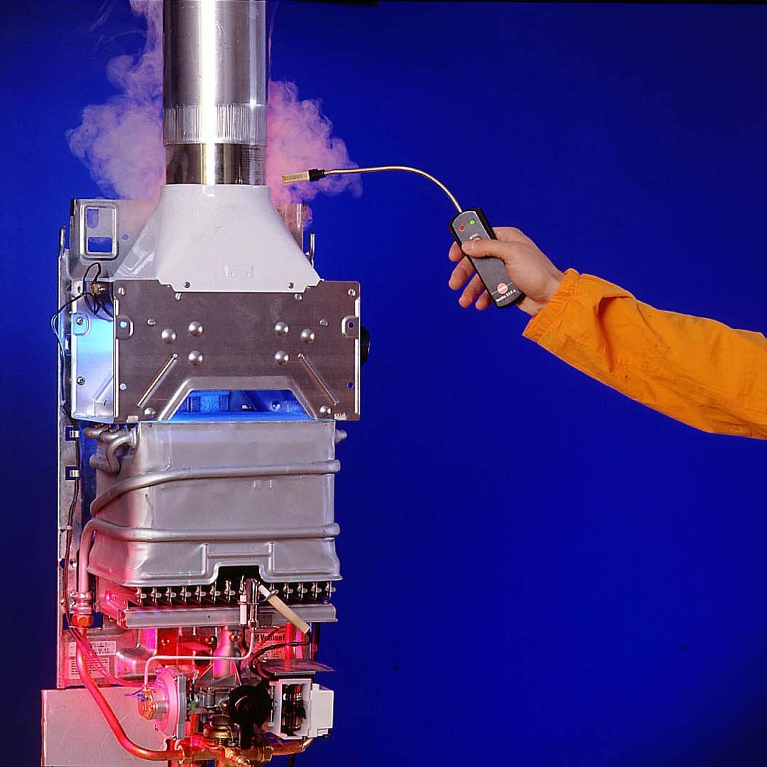 Завдяки течешукачу testo 317-1 ви зможете швидко і точно виявити витоки димових газів. Наявність витоків димових газів свідчить про несправність чи закупорку газоходів.