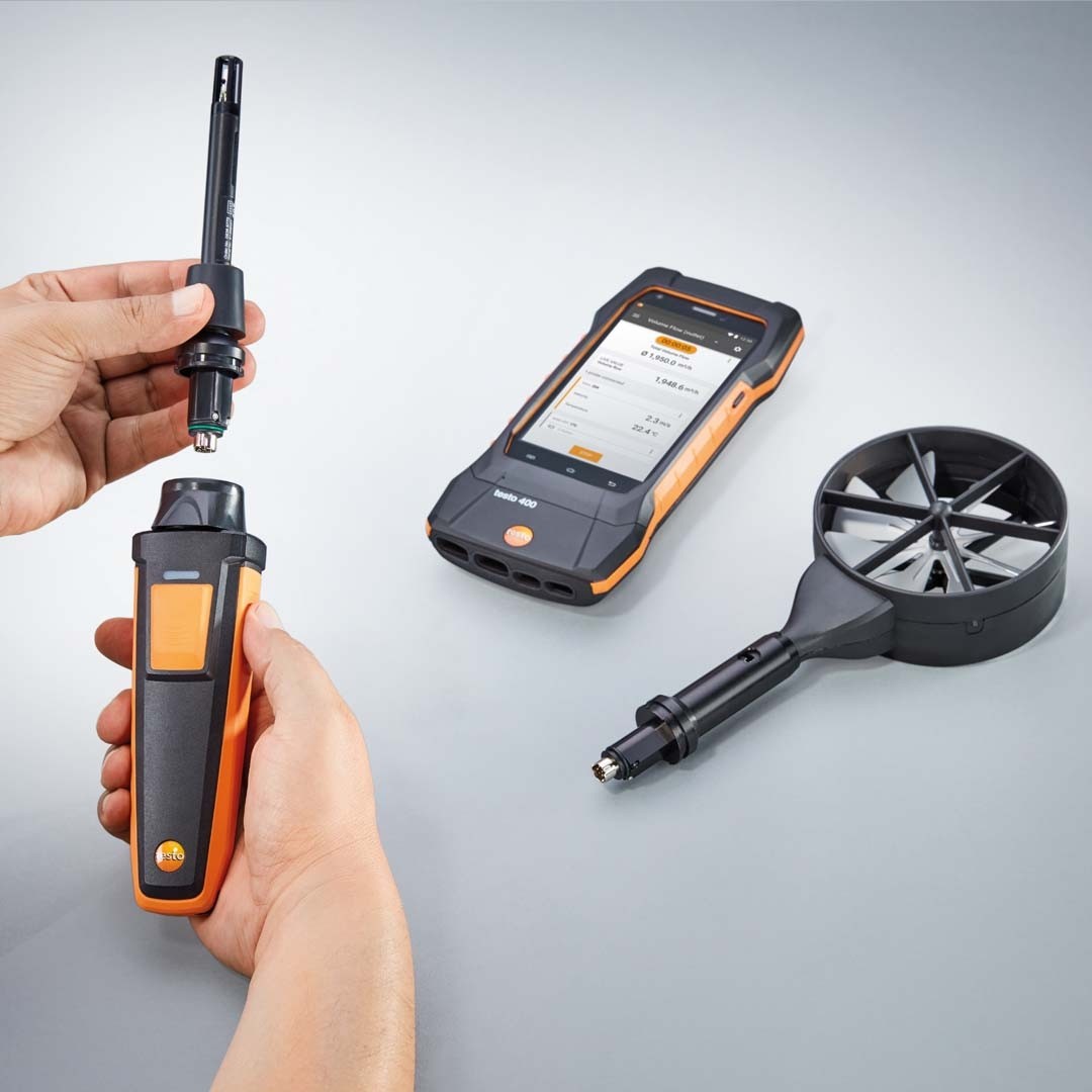 Багатофункціональний анемометр testo 400 обмінюється даними по Bluetooth з усіма Смарт зондами testo, зокрема зі смарт термометром testo 915i.
