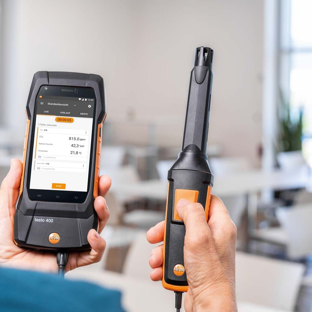 Багатофункціональний анемометр testo 400 обмінюється даними по Bluetooth з усіма Смарт зондами testo, зокрема зі смарт термометром testo 915i.