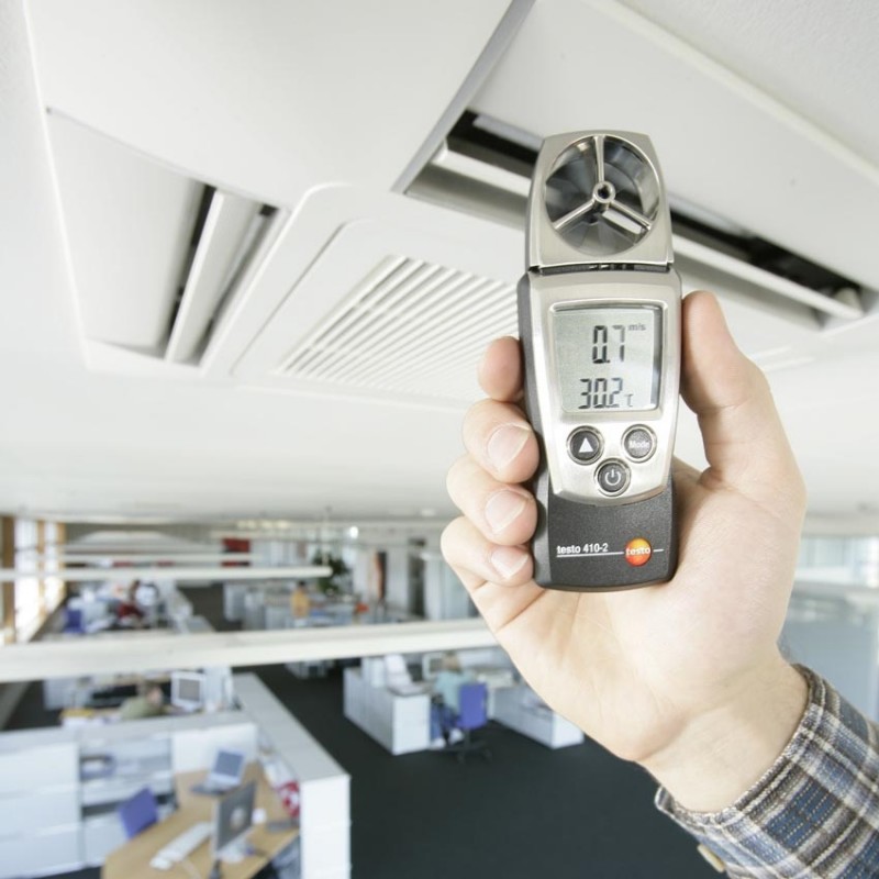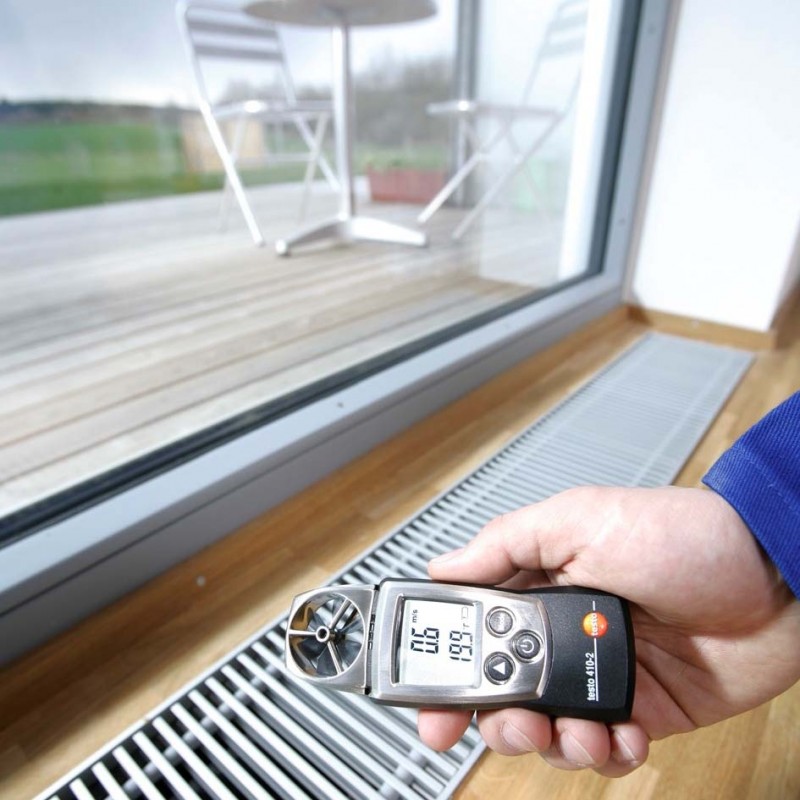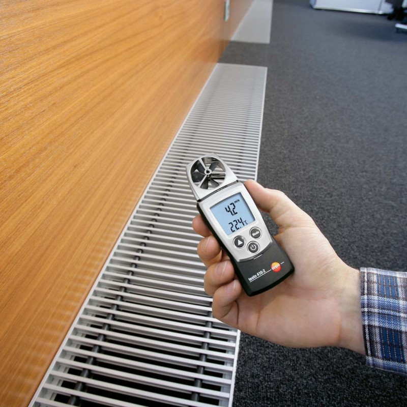 Ручні анемометри testo 410-2 застосовуються для вимірювання швидкості, відносної вологості та температури повітря у приміщеннях та на вентиляційних решітках.
