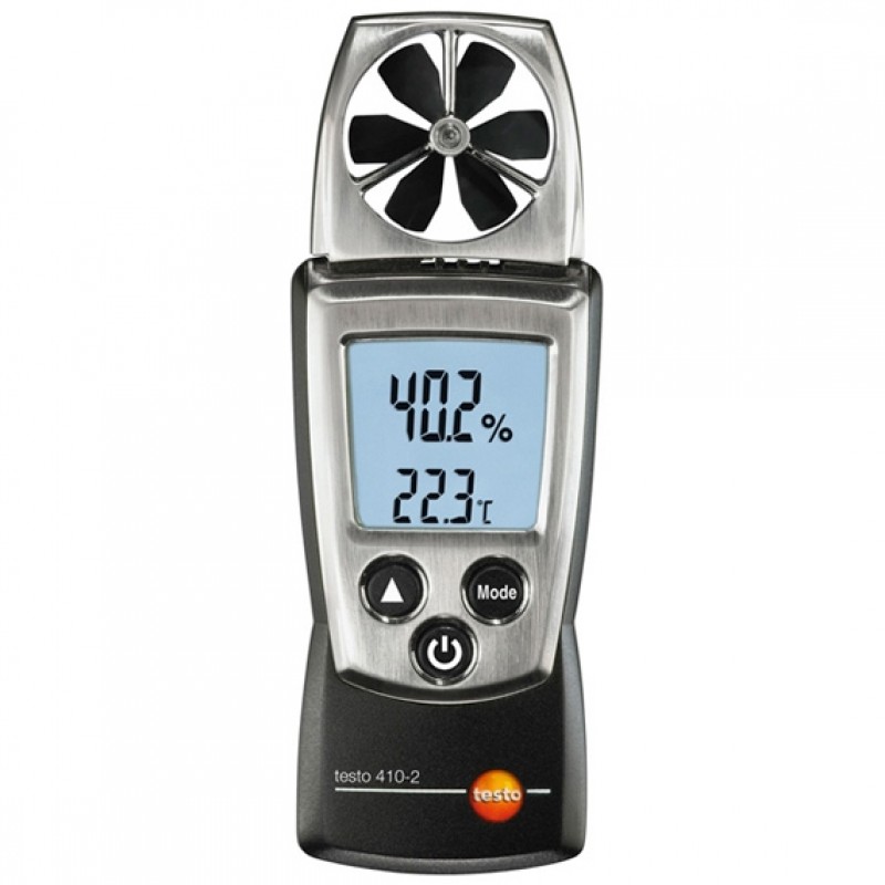 Анемометр гігрометр testo 410-2 з крильчаткою 30 мм для вимірювання швидкості, відносної вологості та температури повітря в приміщеннях та на вентиляційних решітках, з відображенням максимального, мінімального, розрахунком середнього значення за часом