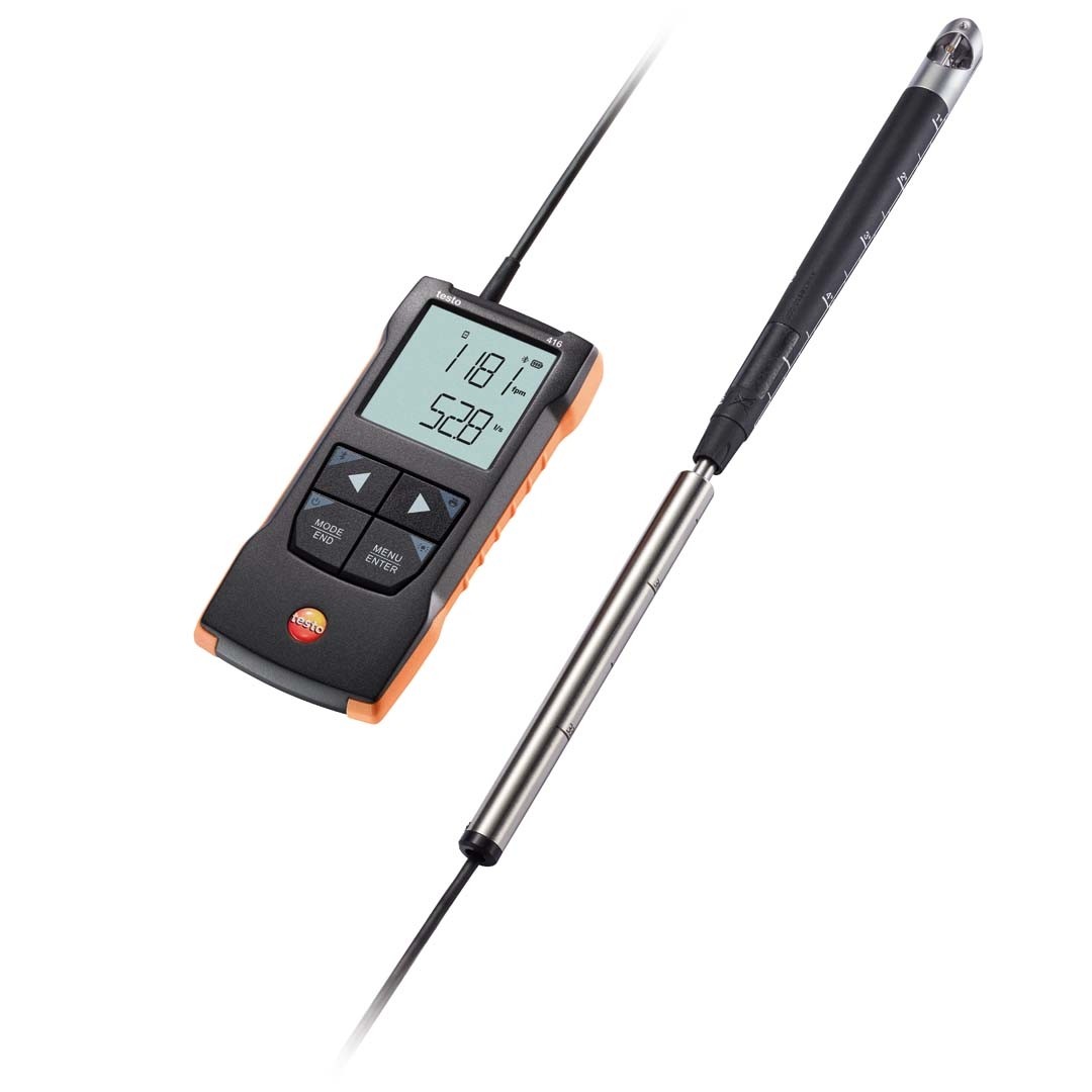 Цифровий анемометр має широкий діапазон вимірювання швидкості потоку повітря від 0,6 до 40 м/с. Для високоточного вимірювання швидкості потоку повітря в діапазоні до 30 м/с рекомендуємо використовувати термоанемометр з телескопічним зондом testo 425.