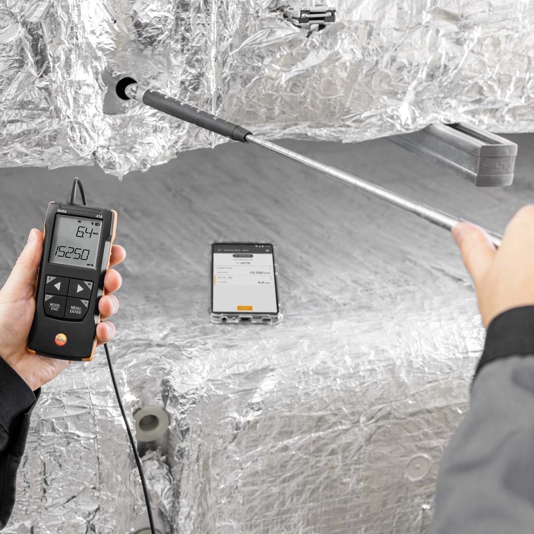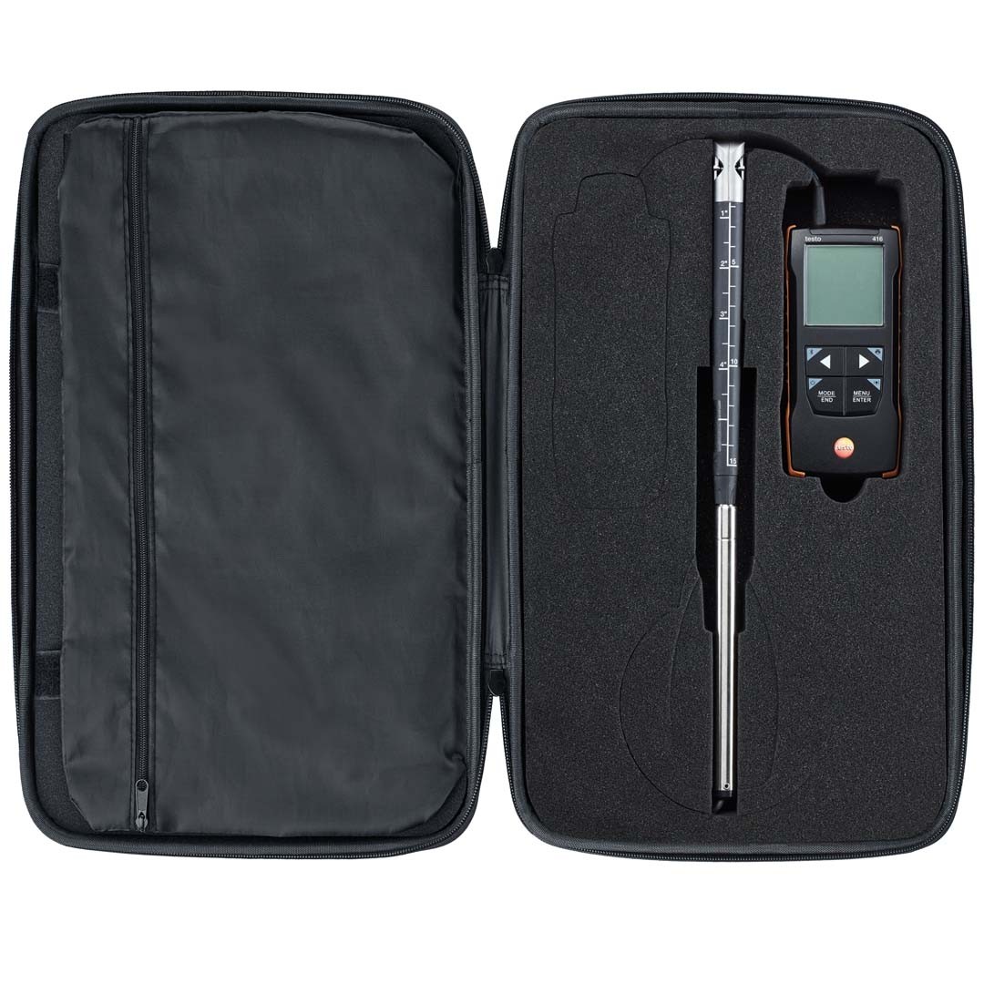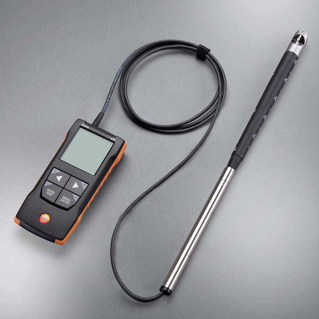 Завдяки тому, що анемометр з крильчаткою testo 416 має похибку від 0,2 м/с, він стане незамінним помічником для фахівців, які займаються пуском і налагодженням, налаштуванням і обслуговуванням систем кондиціонування та приточно-витяжної вентиляції в житлових, офісних і промислових приміщеннях. Завдяки компактному та міцному корпусу крильчатий анемометр підходить для використання навіть у складних умовах.