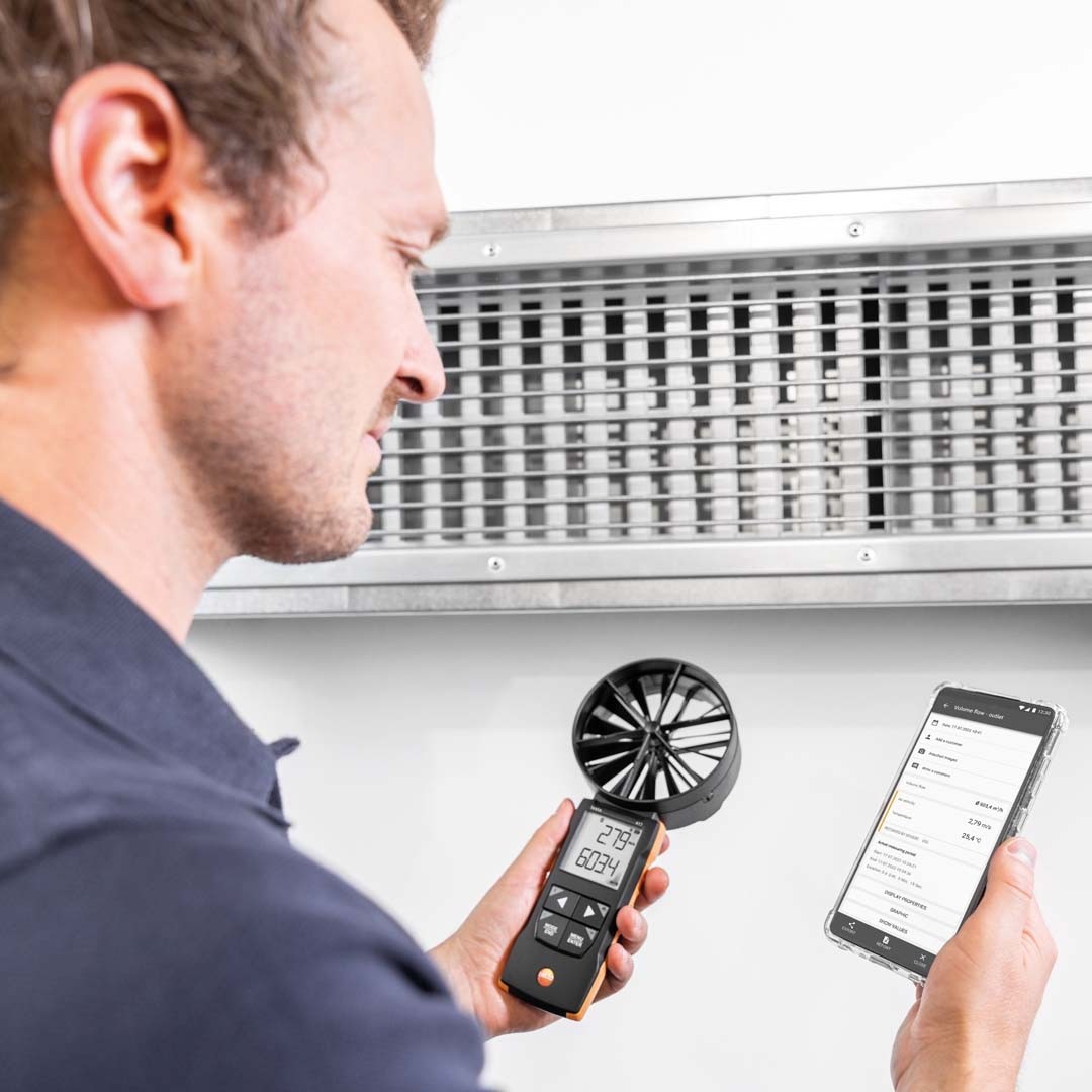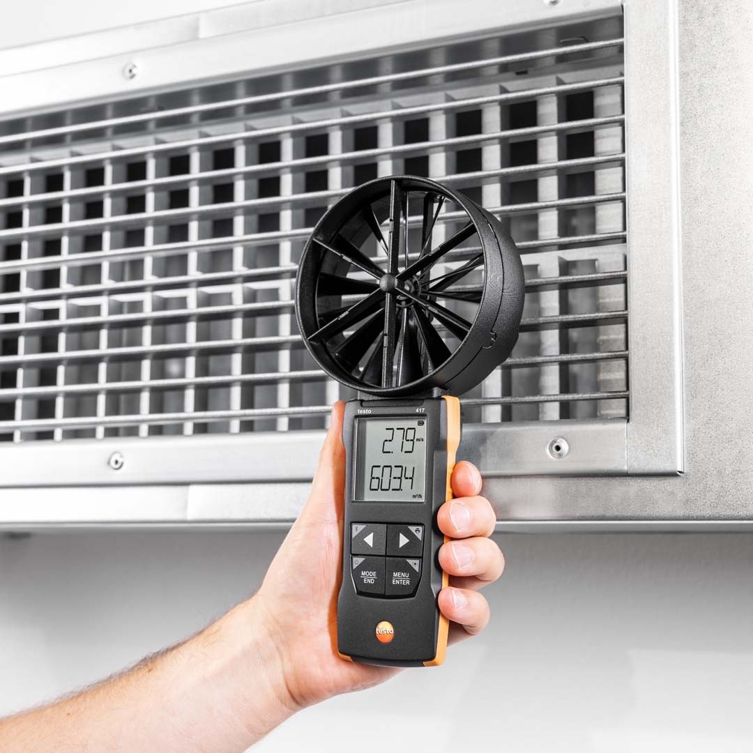 Електронні анемометри testo 417 мають вбудований сенсор температури повітря. Вимірювання температури повітря та об'ємної витрати дозволяють визначити продуктивність системи обігріву чи охолодження.
