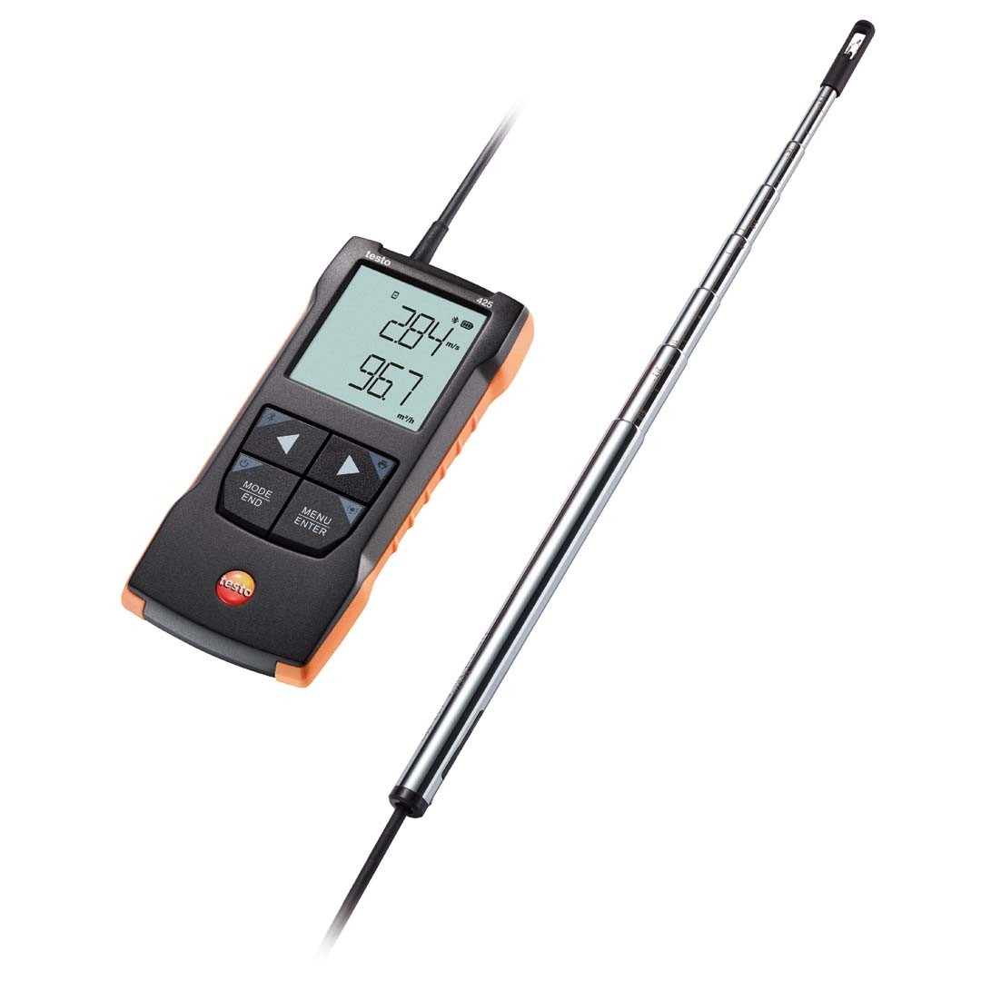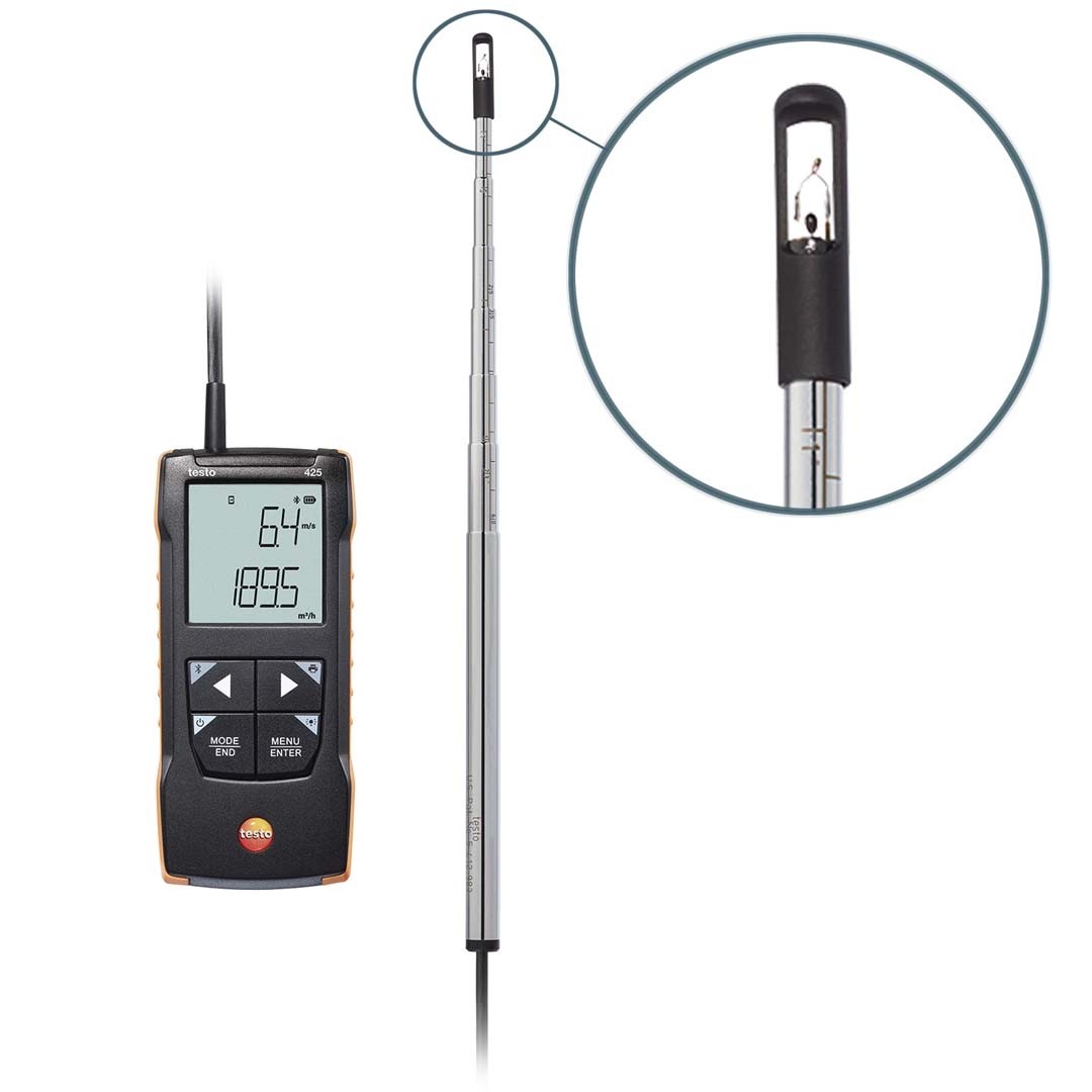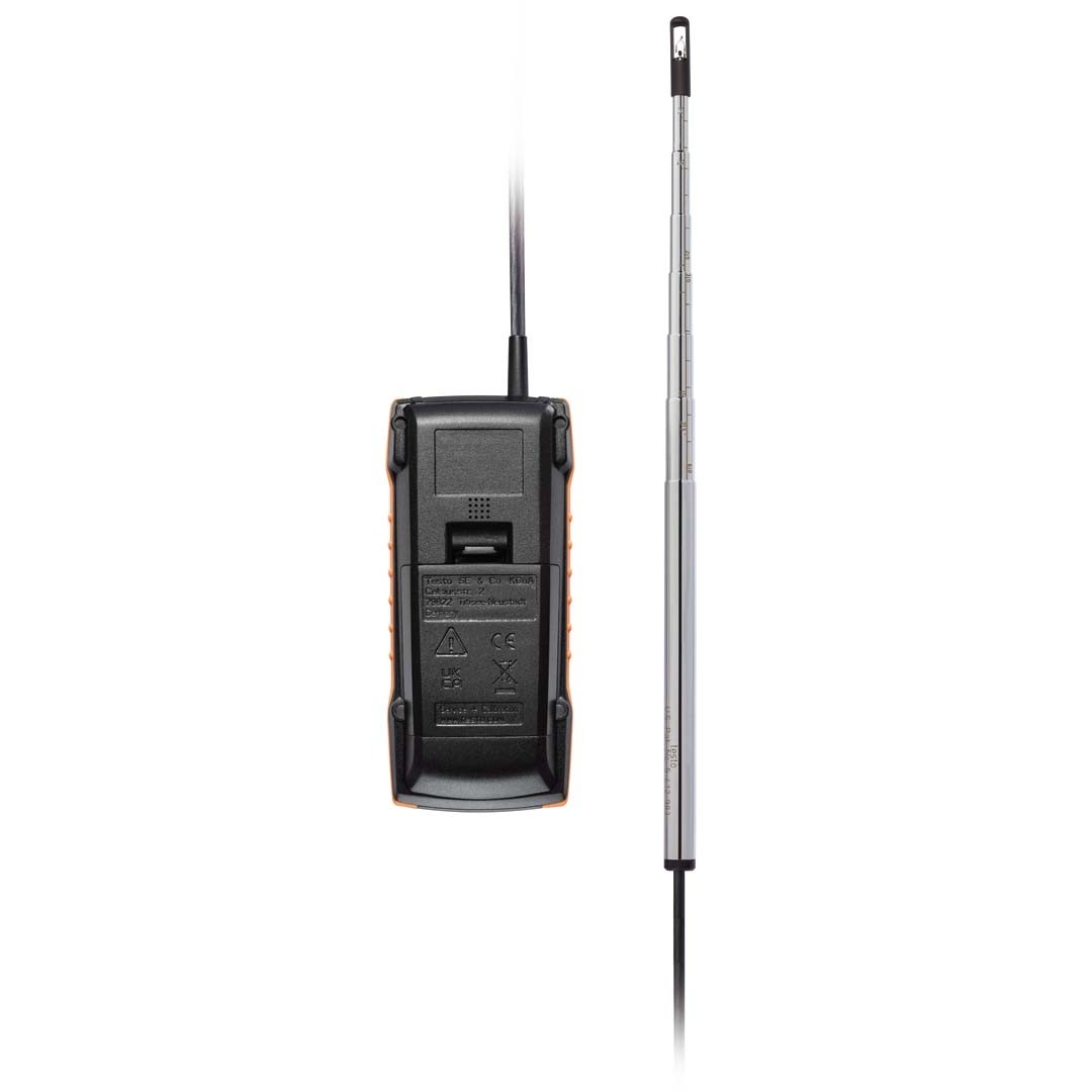 Термоанемометр testo 425 з телескопічним зондом для вимірювання швидкості, температури та об'ємної витрати, з розрахунком середнього значення за часом і кількістю вимірювань, передачею даних на смартфон, максимальна довжина зонда 820 мм