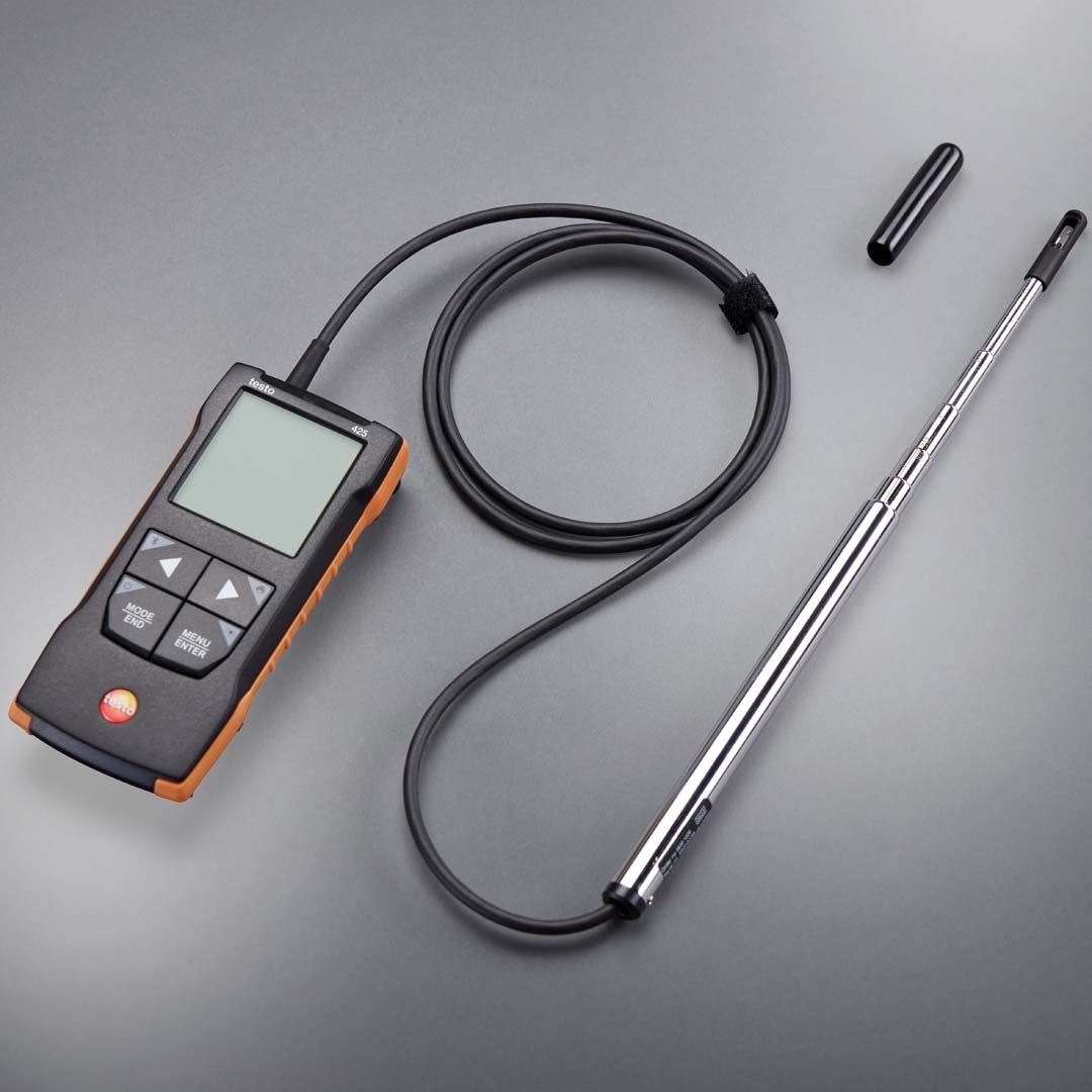 Переносний анемометр testo 425 стане незамінним помічником для фахівців, які займаються пуском, налаштуванням, перевіркою і обслуговуванням систем кондиціонування та приточно-витяжної вентиляції в житлових, офісних і промислових приміщеннях.