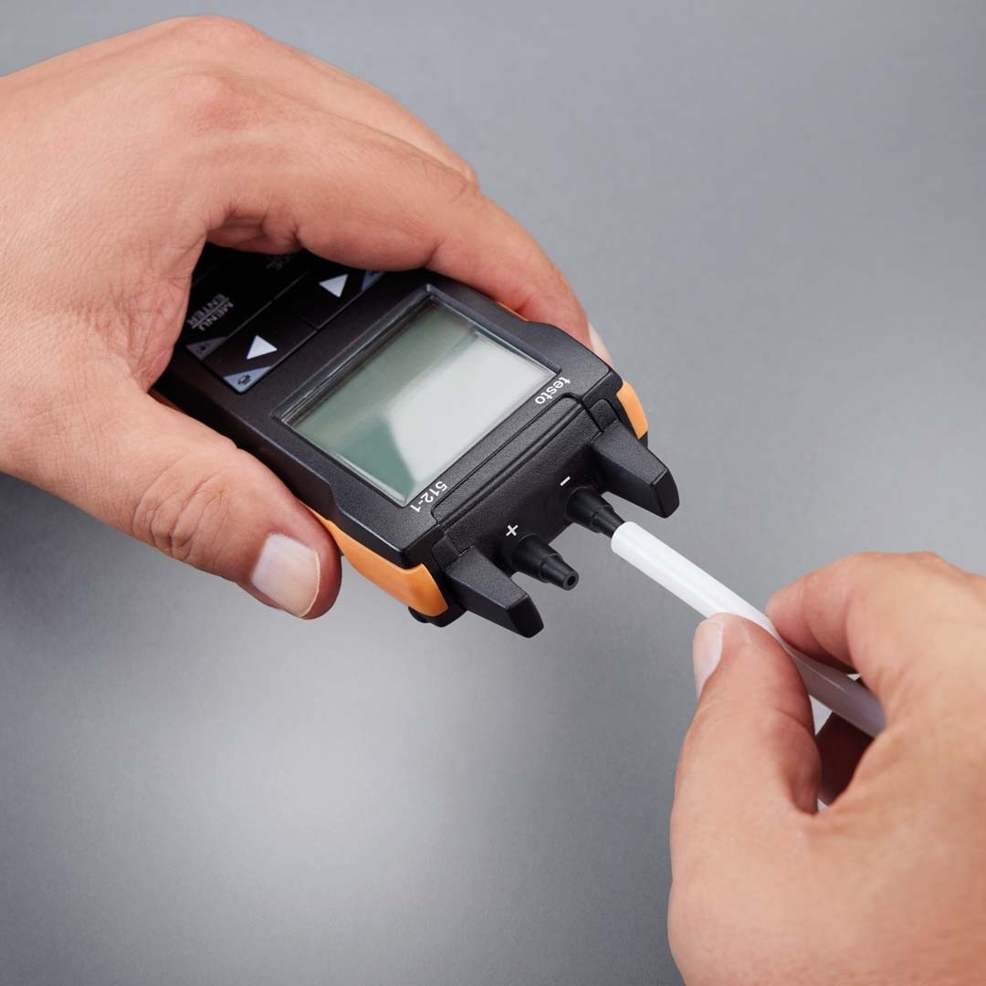 До серії професійних дифманометрів testo 512 входить також testo 512-2 з вимірюванням тиску до 2000 гПа та металевими штуцерами.
