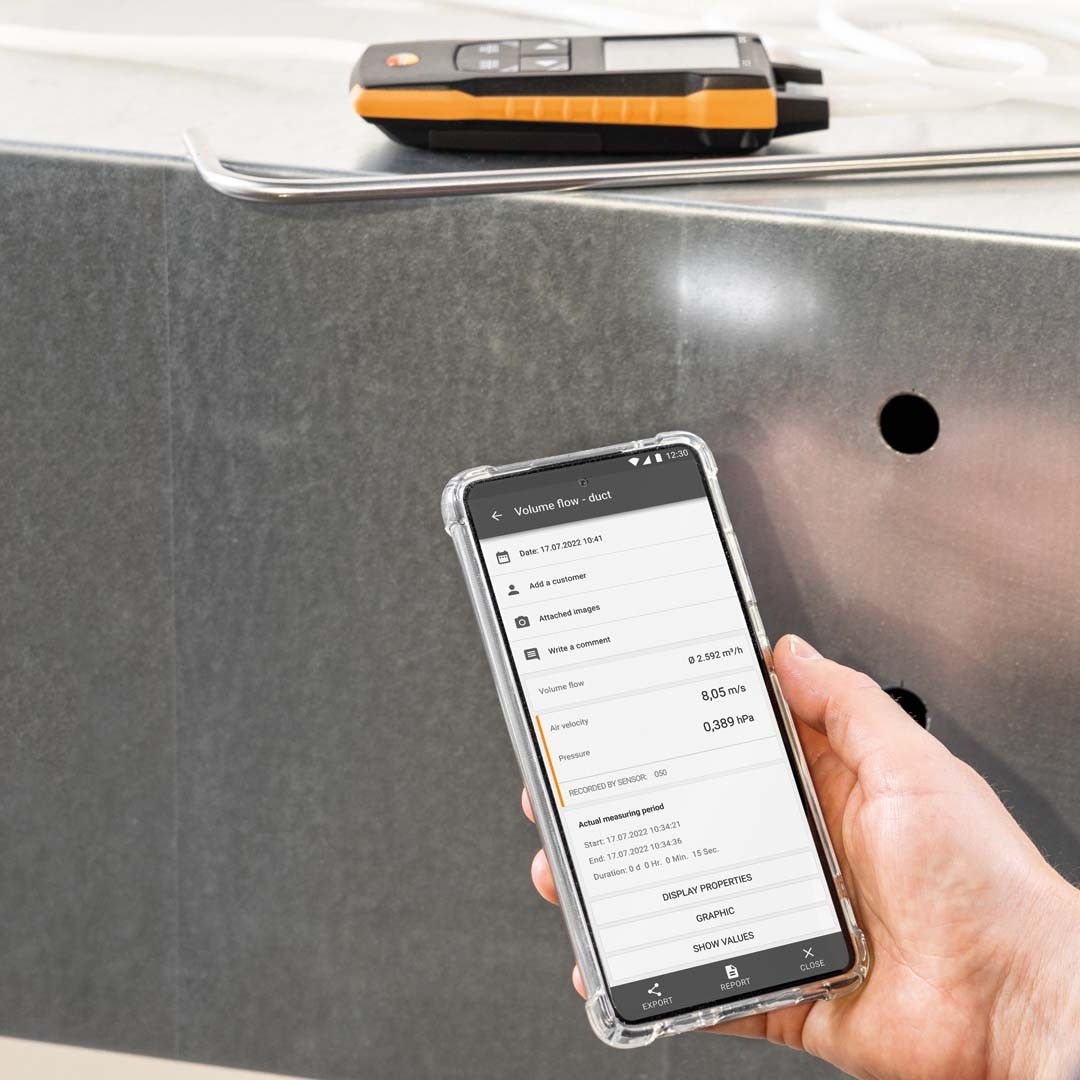 Ручний дифманометр testo 512-1 оснащений Bluetooth і має можливість передавати виміряні дані на смартфон або планшет, зі встановленим Застосунком testo Smart. Застосунок testo Smart безкоштовний для завантаження і підходить для мобільних пристроїв з операційними системами Android або iOS. Функції цифрового дифманометру чудово доповнюються Застосунком, завдяки якому ви зможете переглянути виміряні значення у вигляді списку, таблиці або графіка, зберегти їх та створити цифрові звіти по результатах вимірювань. Застосунок не тільки допоможе індивідуально налаштувати дифманометр, а й перетворить ваш смартфон на другий дисплей приладу.