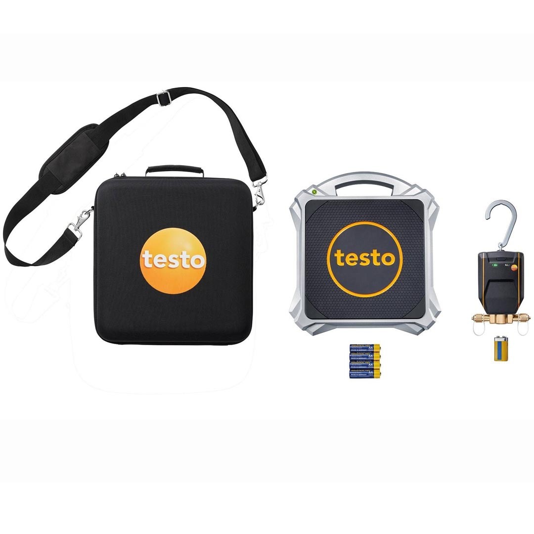 Комплект цифрові ваги для холодоагенту testo 560і та смарт клапан для автоматичного заправлення кондиціонерів, холодильних систем та теплових насосів холодоагентом, з Bluetooth, передачею даних на смартфон та манометричний колектор