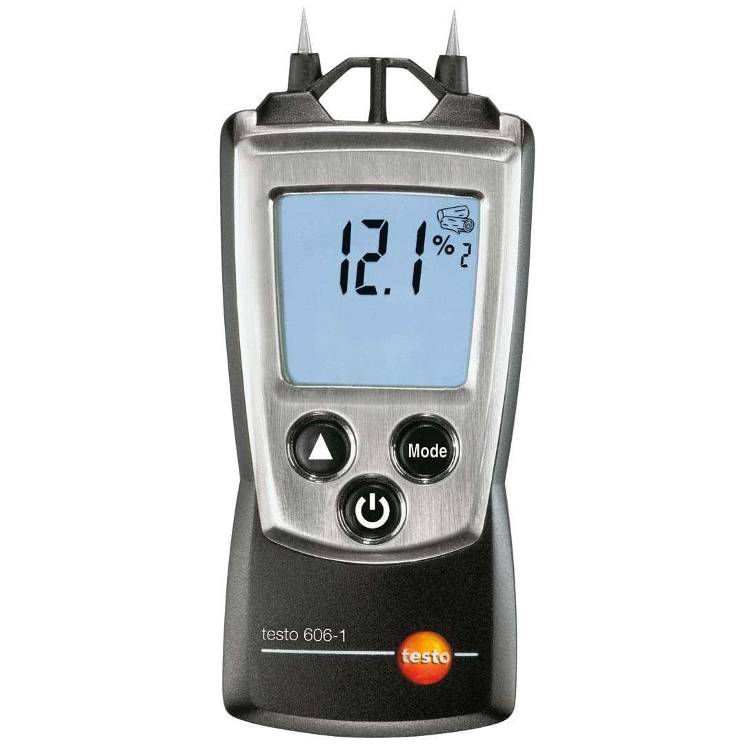 Вологомір деревини testo 606-1 вимірює рівень вологості контактним методом. Вимірювач вологості деревини оснащений двома голчастими електродами, які занурюють в вимірюваний матеріал. Принцип вимірювання полягає в вимірюванні провідності між електродами.