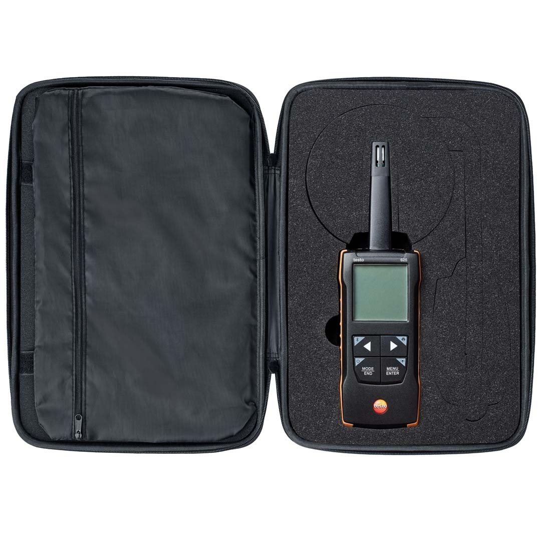 Цифровий термогігрометр testo 625 з виносним зондом для вимірювання вологості та температури, розрахунком точки роси та середнього значення за часом і кількістю точок вимірювання, звуковою сигналізацією, передачею даних на смартфон