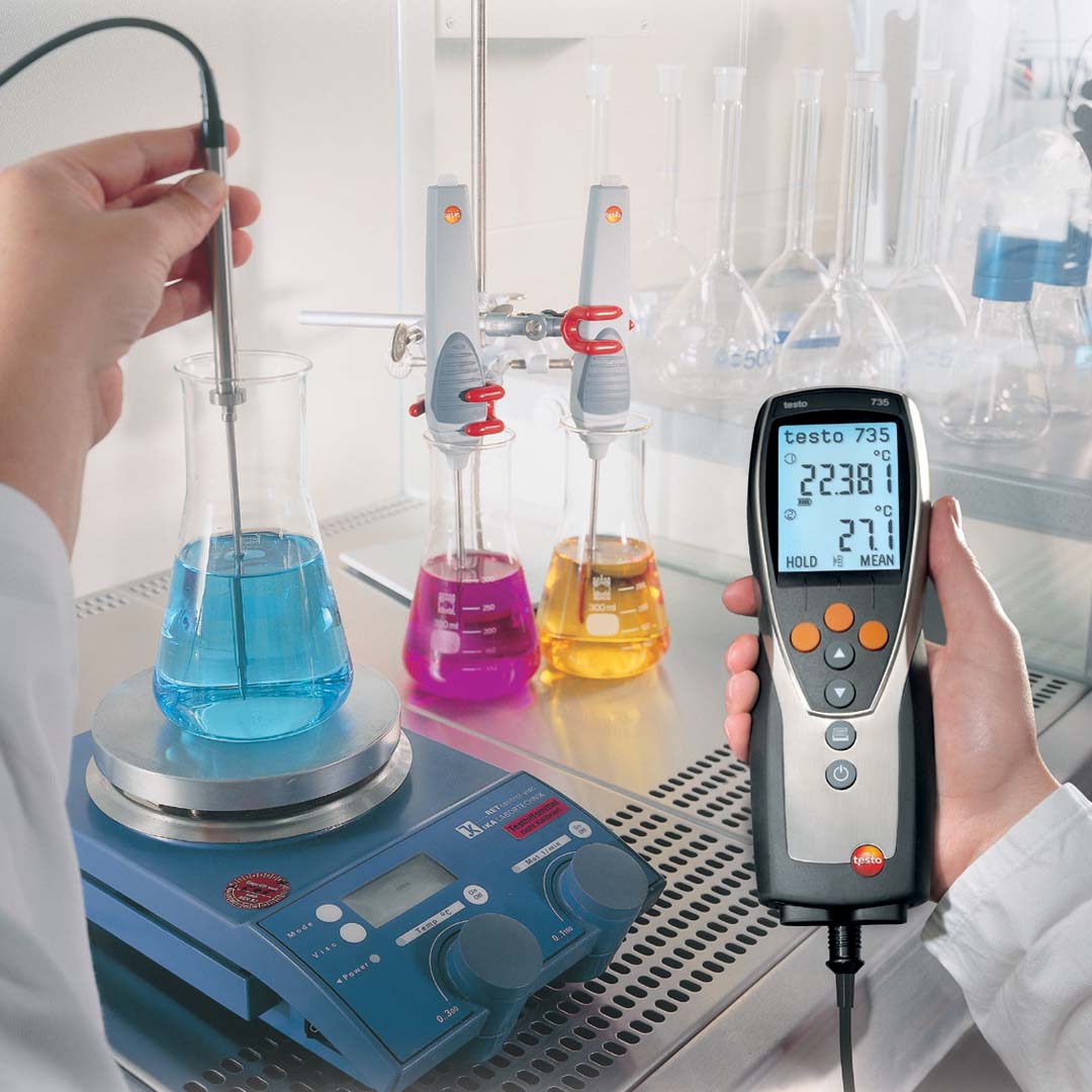 Високоточний термометр testo 735 має величезну кількість зондів, що підключаються, серед яких зонди для вимірювання температури на рівній і нерівній поверхнях, зонди з затискачем для вимірювання температури труб, погружні і проникаючі зонди для вимірювання температури в рідинах та напівтвердих середовищах, а також швидкодіючі зонди для вимірювання температури повітря.