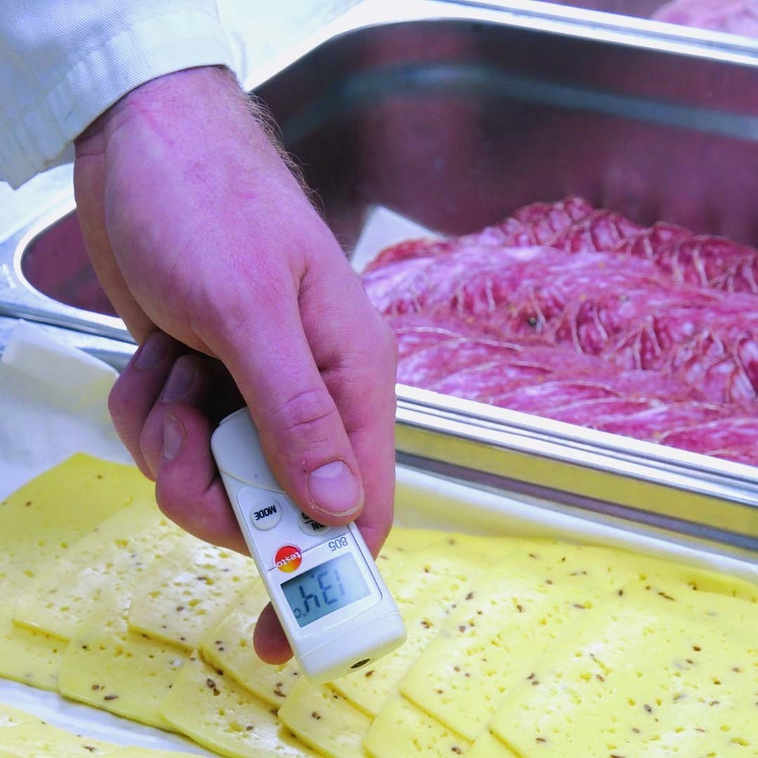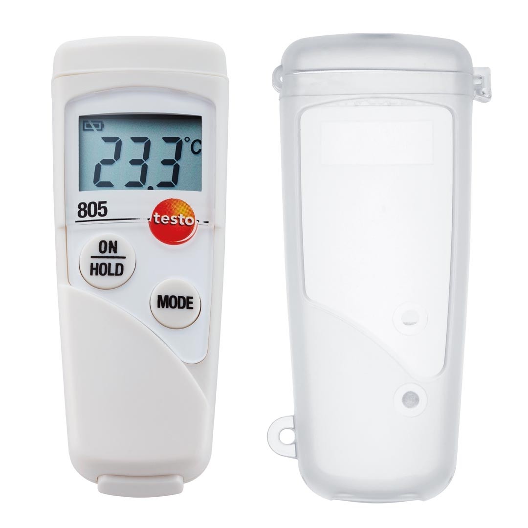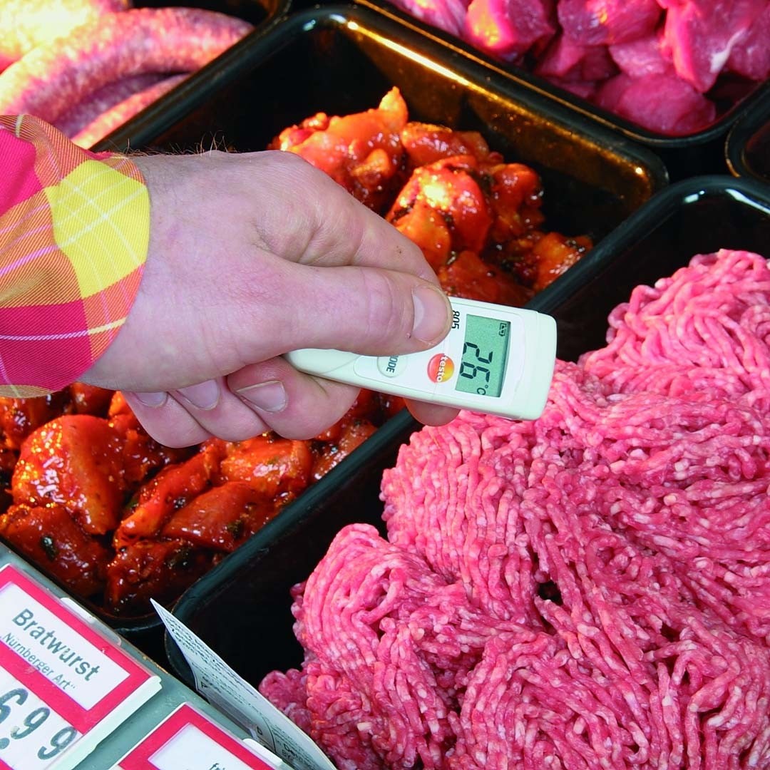 Лазерний термометр testo 805 призначений для експрес вимірювань температури з невеликих відстаней. Наприклад, в харчовому секторі, при прийманні товарів в супермаркетах або контролю режиму холодильних камер та холодильних вітрин в супермаркетах. Однак інфрачервоний термометр testo 805 застосовується не тільки в харчовій промисловості, а й у будівельній сфері.