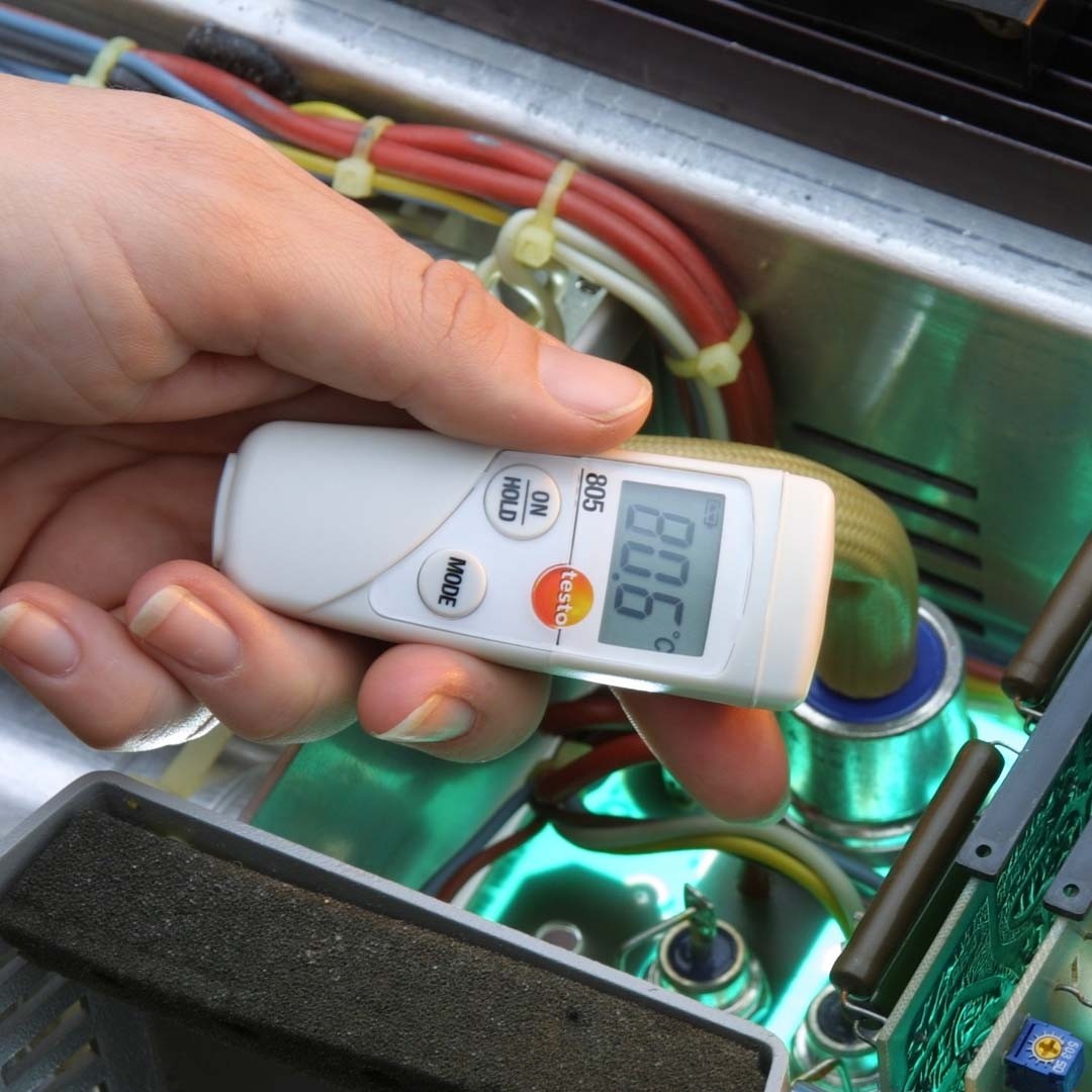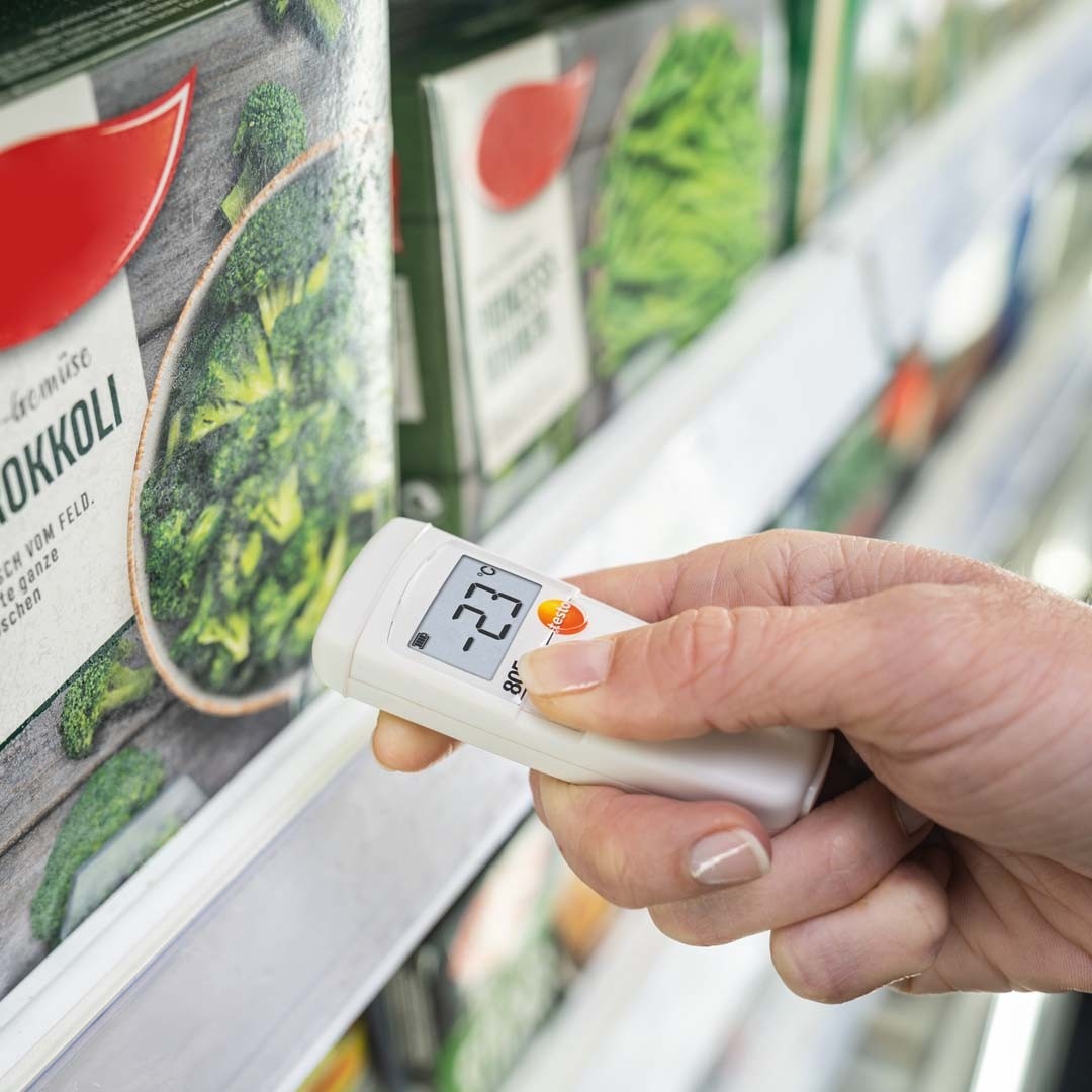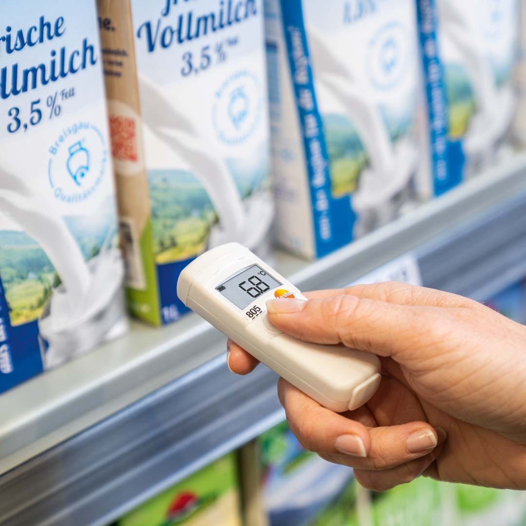 Лазерний термометр testo 805 призначений для експрес вимірювань температури з невеликих відстаней. Наприклад, в харчовому секторі, при прийманні товарів в супермаркетах або контролю режиму холодильних камер та холодильних вітрин в супермаркетах. Однак інфрачервоний термометр testo 805 застосовується не тільки в харчовій промисловості, а й у будівельній сфері.