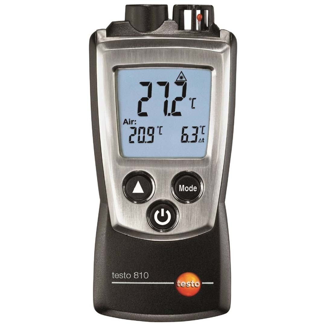 Промисловий пірометр testo 810 для безконтактного вимірювання температури поверхні та повітря, з відображенням максимального та мінімального значень, автоматичним розрахунком різниці температур та 1-точковим лазерним маркером