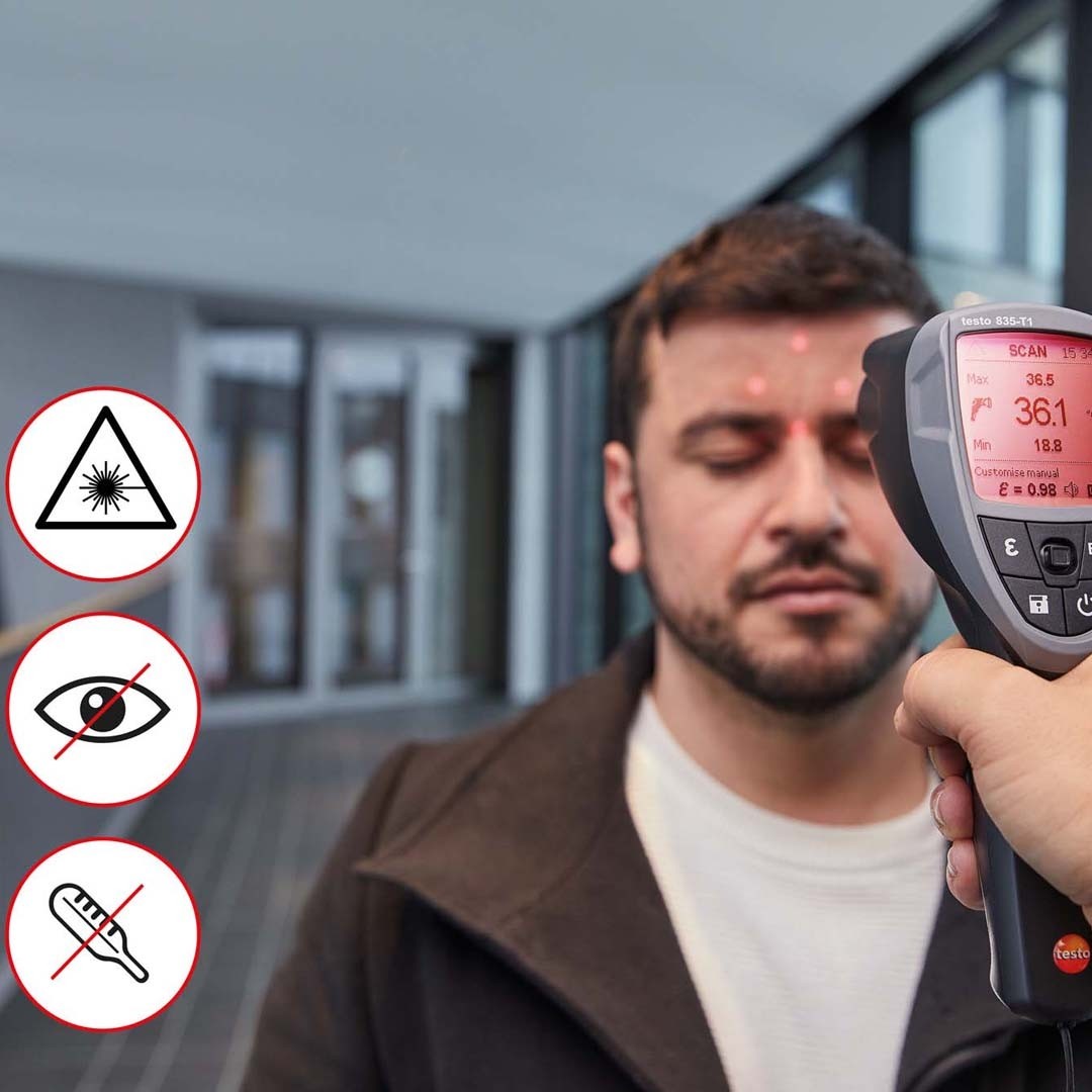 Крім цього, інфрачервоні термометри testo 835 Т1 оснащені роз'ємом для підключення зонда для контактних вимірювань температури і автоматичного визначення коефіцієнта емісії на об'єкті вимірювань.