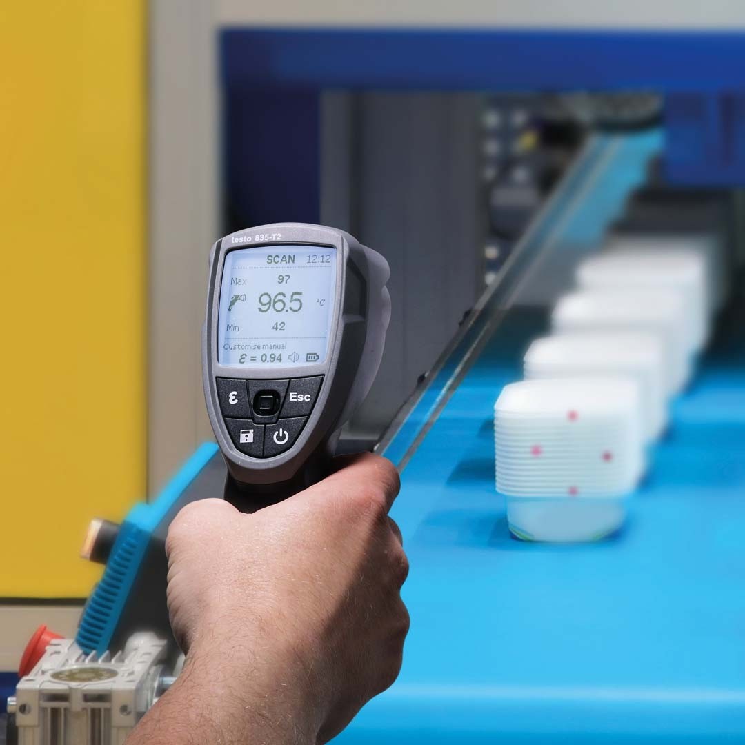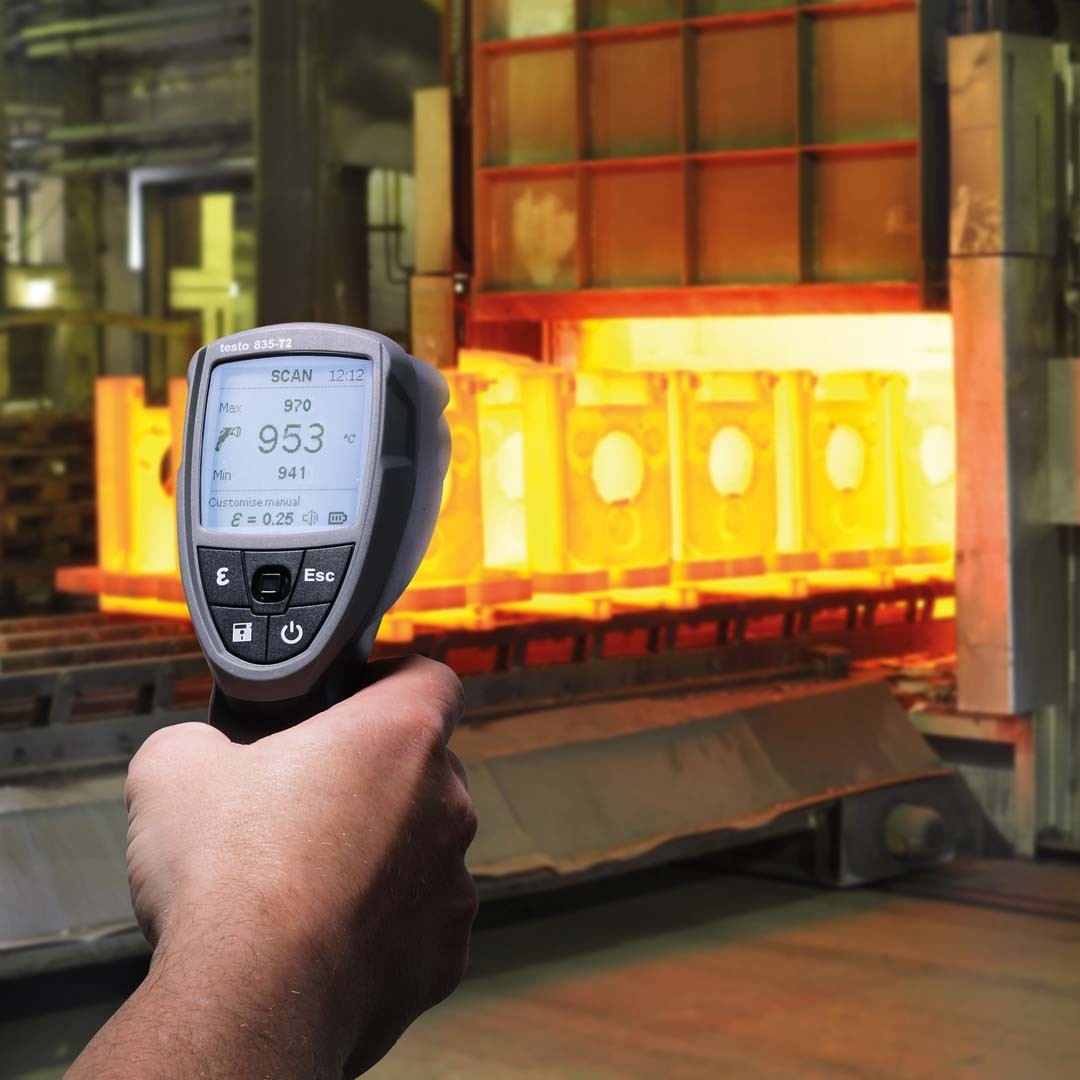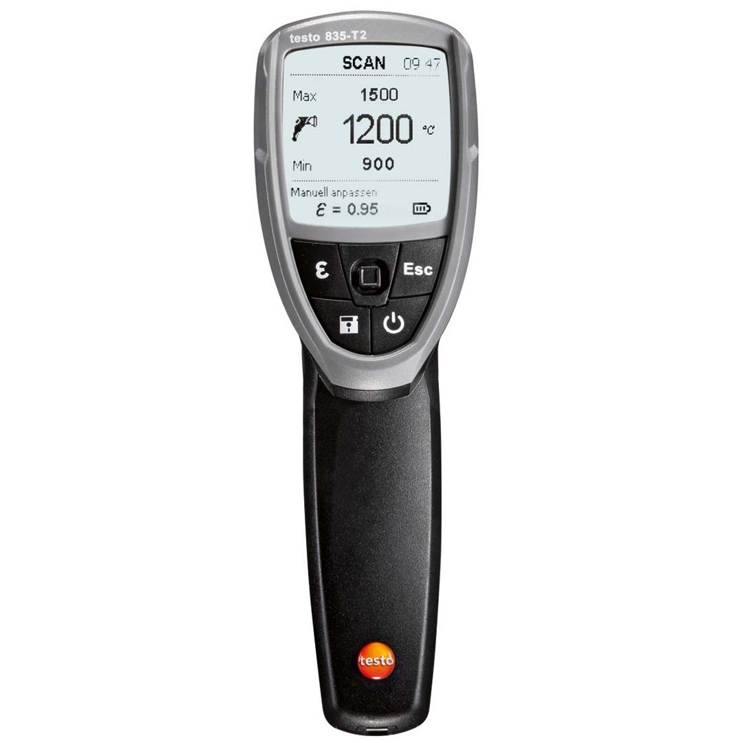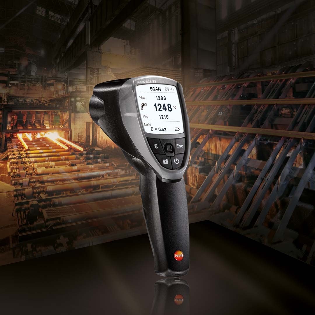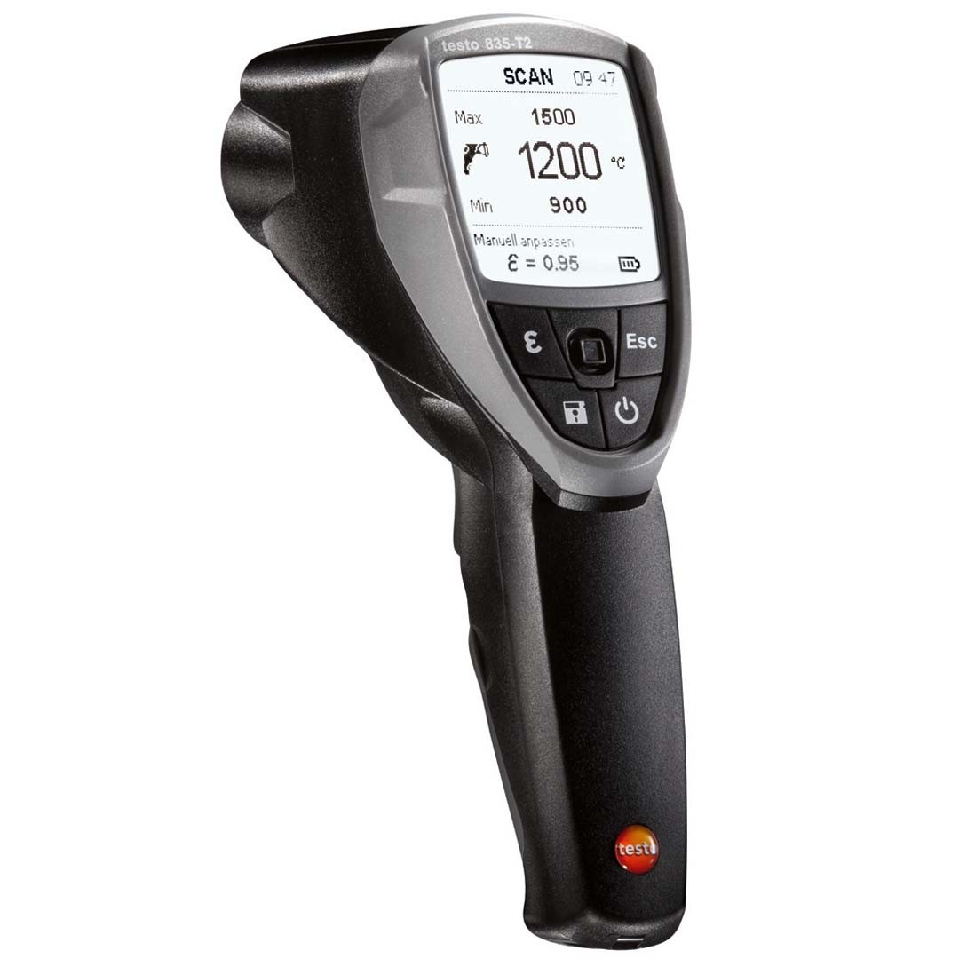 Великий діапазон вимірювань безконтактного термометра testo 835 Т2 відкриває широкі можливості для проведення вимірювань: від загальнотехнічних вимірювань і контролю якості на виробництві до вимірювань температури розпеченого металу або кераміки та розплавленого скла при температурах до +1500 °C.