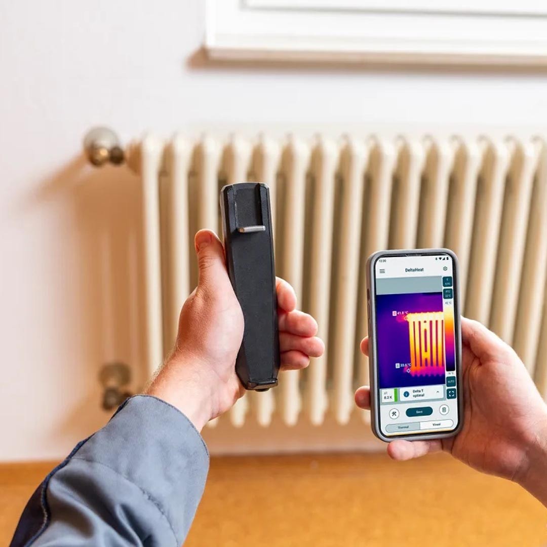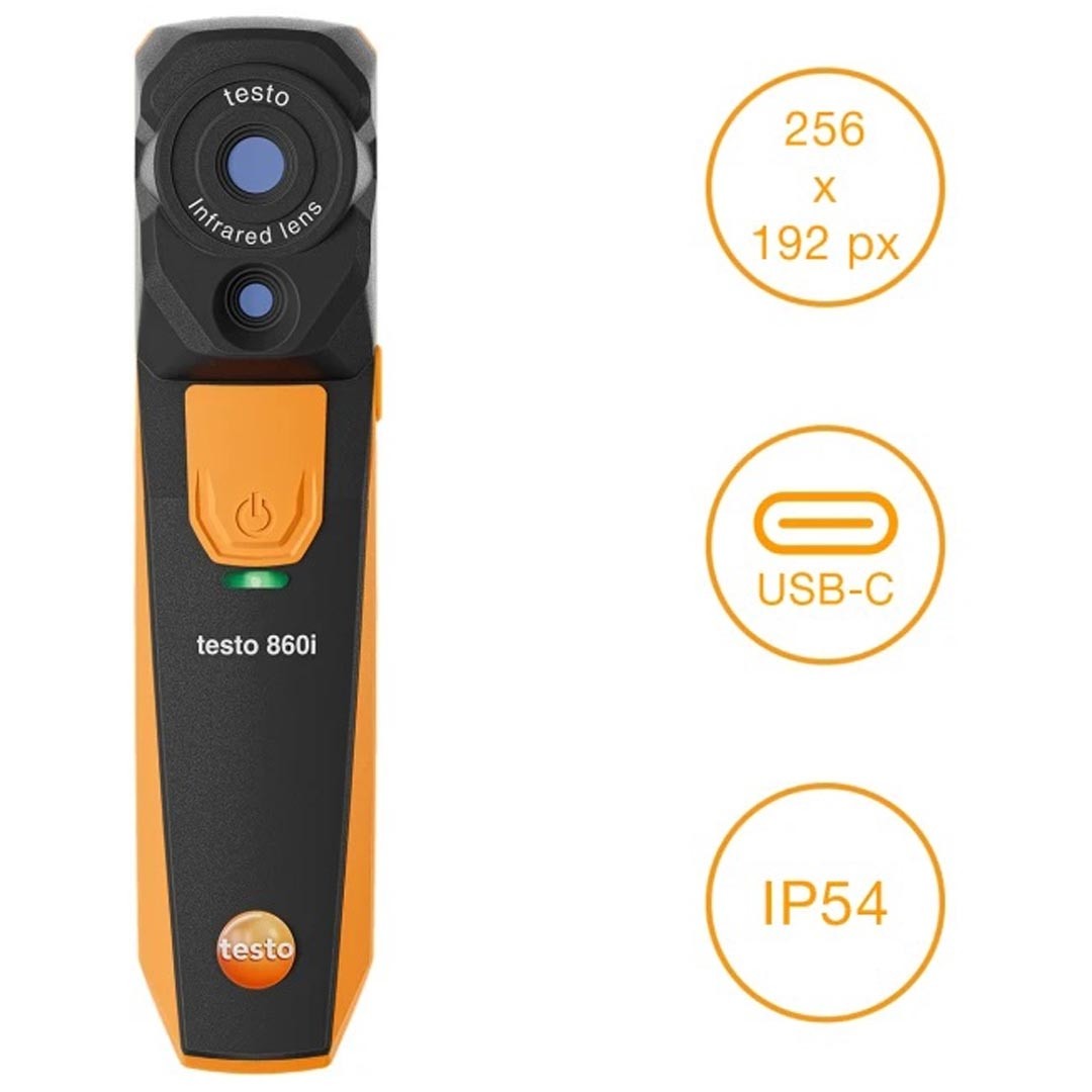 Тепловізор для смартфона testo 860i з автоматичним розпізнаванням найбільш гарячої та холодної точок, визначенням різниці прямої та зворотної температури на радіаторах, різниці температур у системах охолодження та кондиціювання, Bluetooth, передачею даних на смартфон