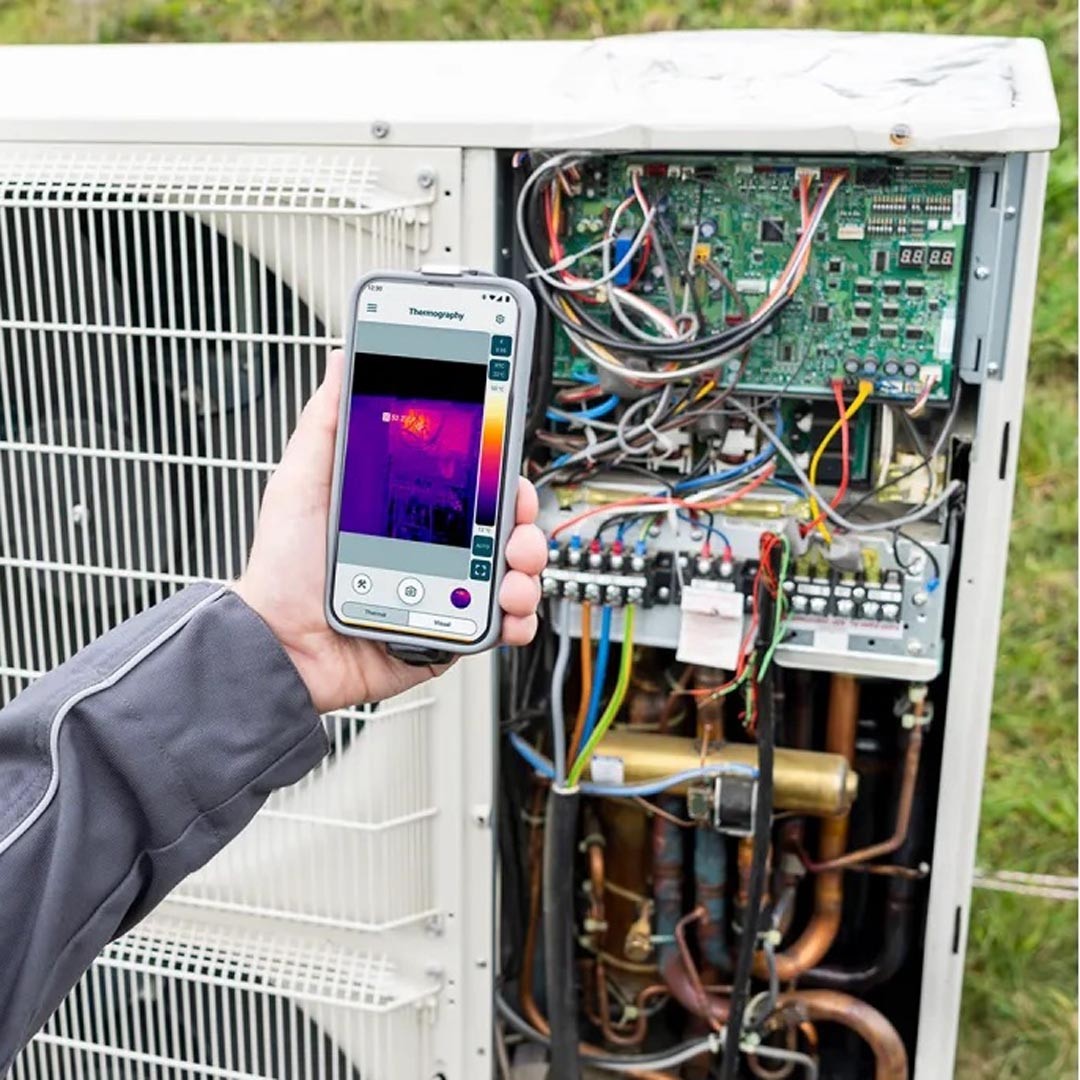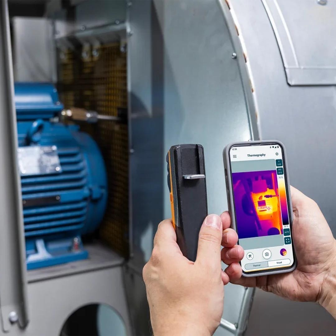 Тепловізор для смартфона testo 860i з простим керуванням і роботою в Застосунку testo Smart - ідеальний вибір для швидких перевірок та технічного обслуговування в сфері ОВК, будівництві, контролю стану інженерних систем і електротехнічного обладнання.
