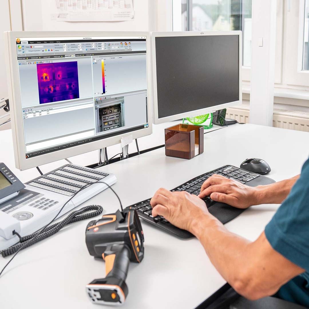 Для максимально комплексного аналізу в тепловізорі для електрика реалізована можливість підключення термогігрометра testo 605i, струмових кліщів testo 770-3 та додавання даних вимірювань безпосередньо до термограми. За допомогою програмного забезпечення IRSoft можна швидко обробляти та аналізувати інфрачервоні зображення, а також створювати професійні звіти на своєму ПК. У програмі IRSoft для обробки теплових зображень доступний значний набір функцій аналізу та обробки термограм, наприклад, накладання ІЧ зображення на видиме зображення об'єкта.