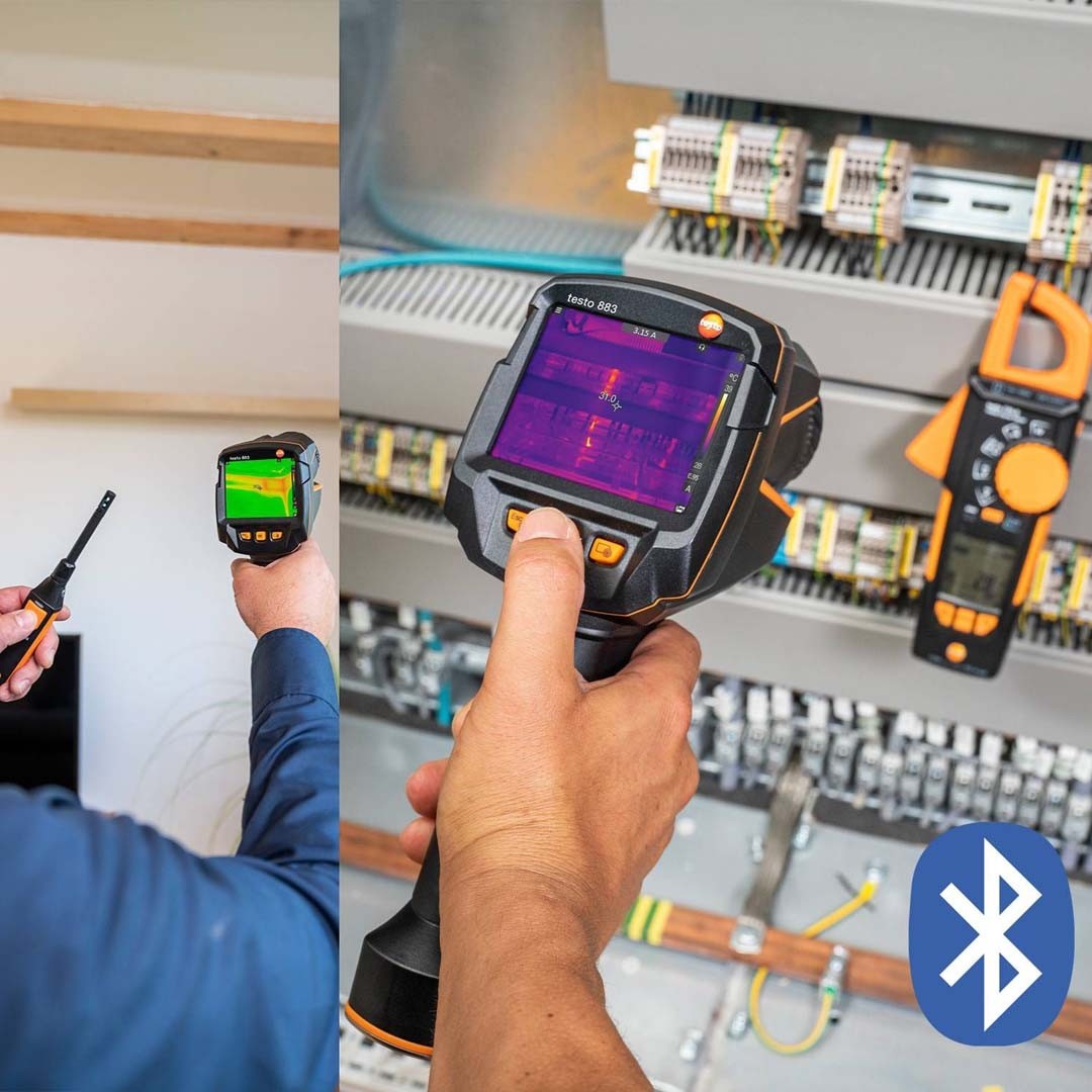 У тепловізорі для енергоаудиту testo 883-2 реалізовані передові технології компанії Testo, а саме передача виміряних даних по Bluetooth до Додатку testo Thermography. Завдяки застосуванню testo Thermography ваш смартфон або планшет стане другим дисплеєм та пультом дистанційного керування для тепловізора. Застосування testo Thermography, при необхідності, дозволить замовнику зі свого смартфона або планшета паралельно контролювати вимірювання, які виконує спеціаліст з енергоаудиту.