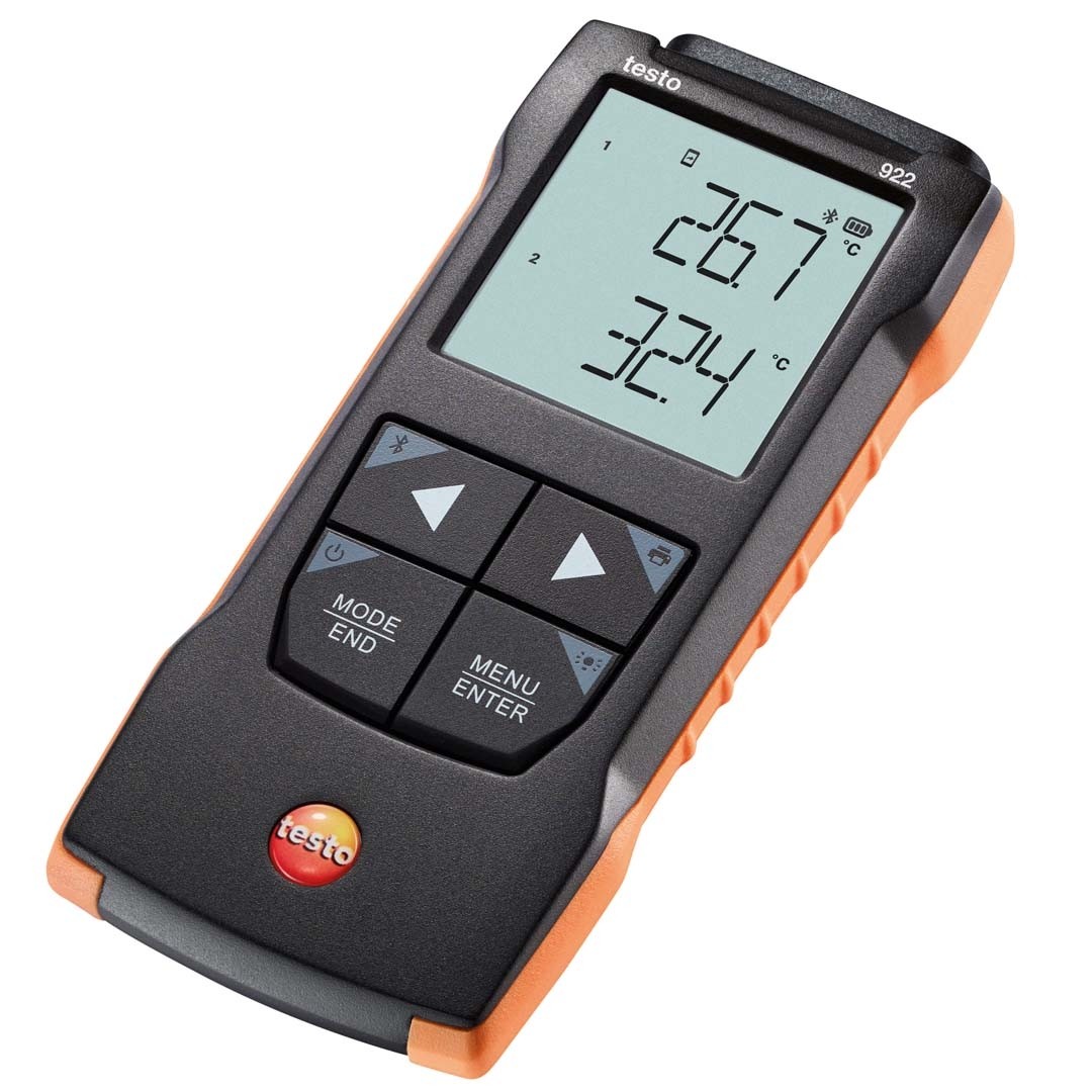 Двоканальний промисловий термометр testo 922 з двома зондами температури, розрахунком різниці температур, звуковою сигналізацією, передачею даних на смартфон, можна замовити два зонди для вимірювання температури від -50 до +1000 °C